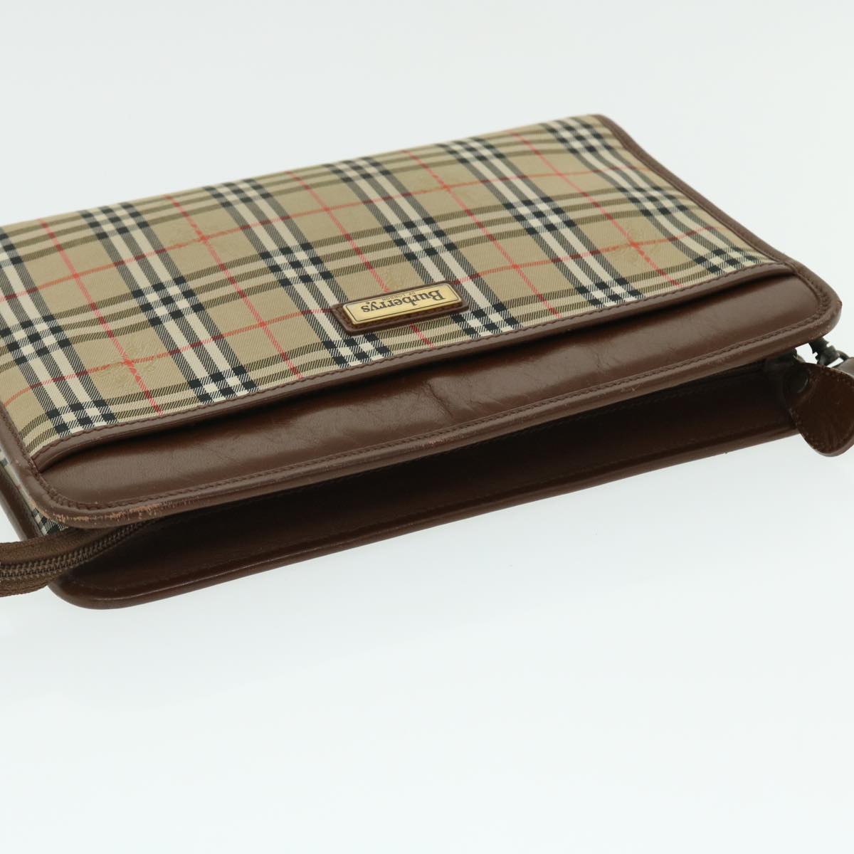 BURBERRYSs Nova Check Clutch Bag Canvas Leather Brown Beige Auth bs7696