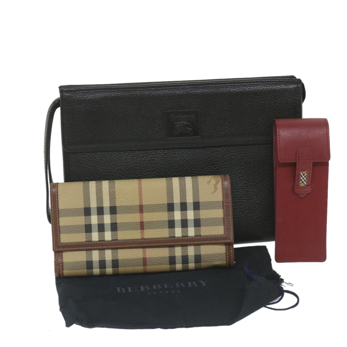 BURBERRYSs Nova Check Clutch Bag Leather 3Set Black Red Beige Auth ac2312