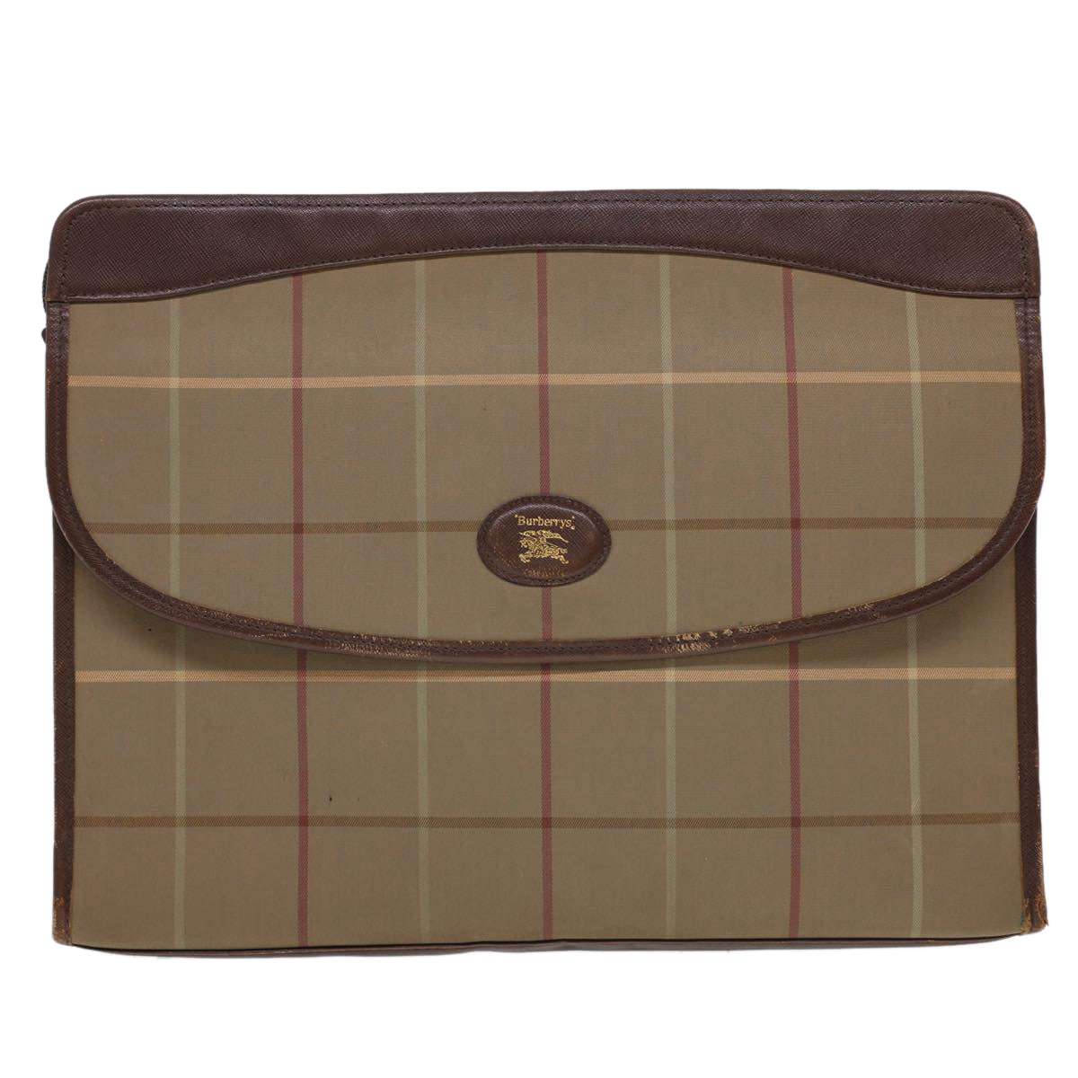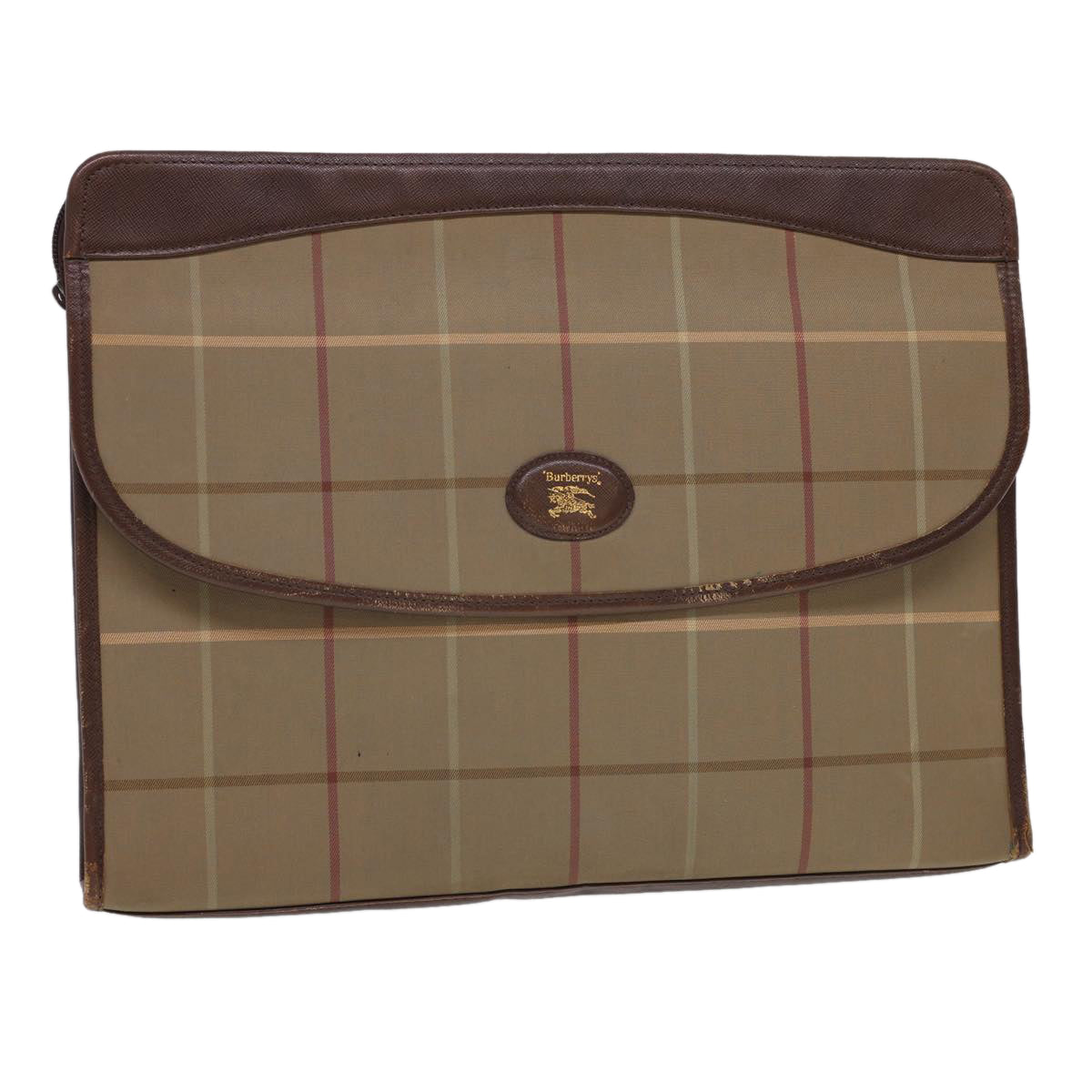 BURBERRYSs Nova Check Clutch Bag Nylon Beige Auth bs4852
