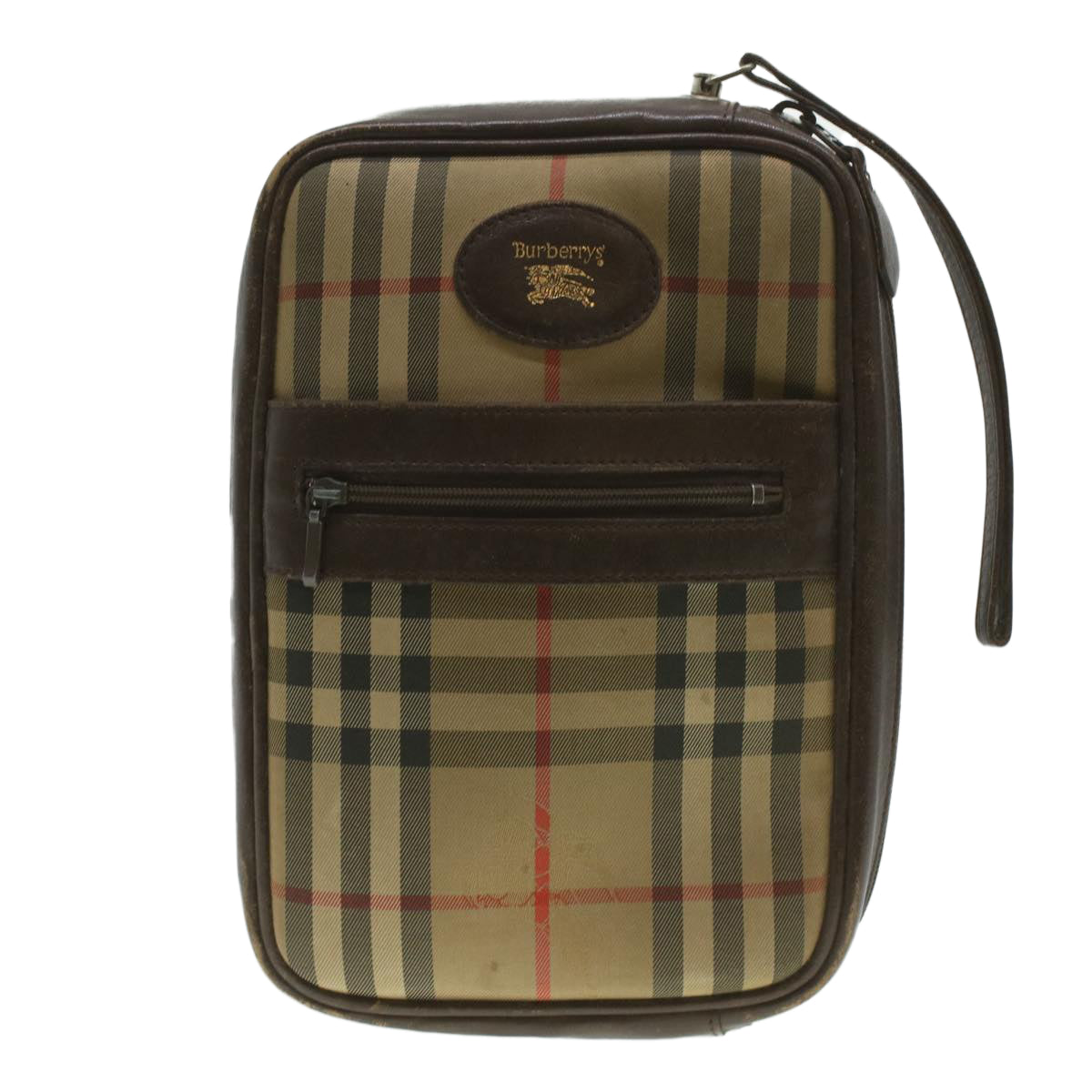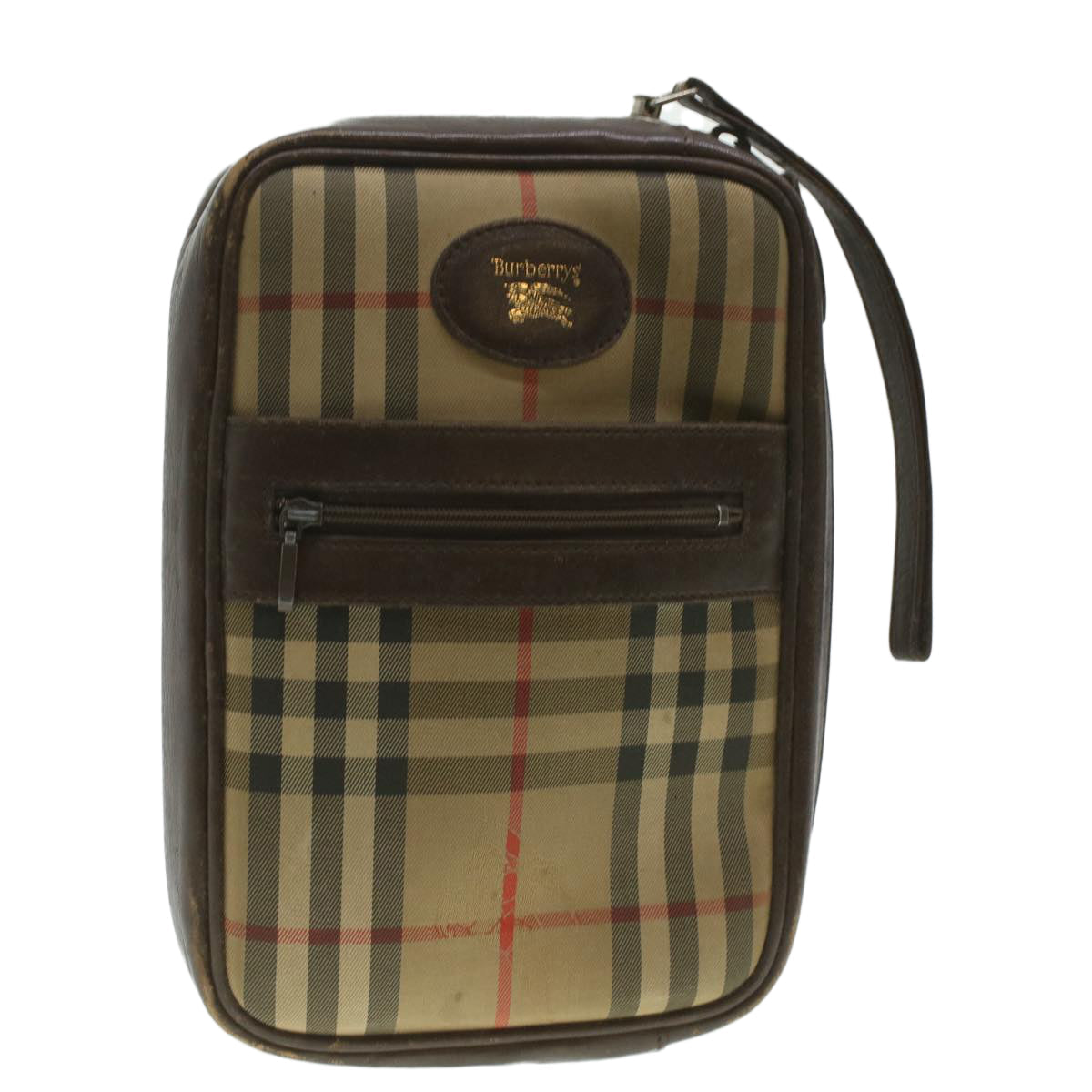BURBERRYSs Nova Check Clutch Bag Nylon Beige Auth ti943