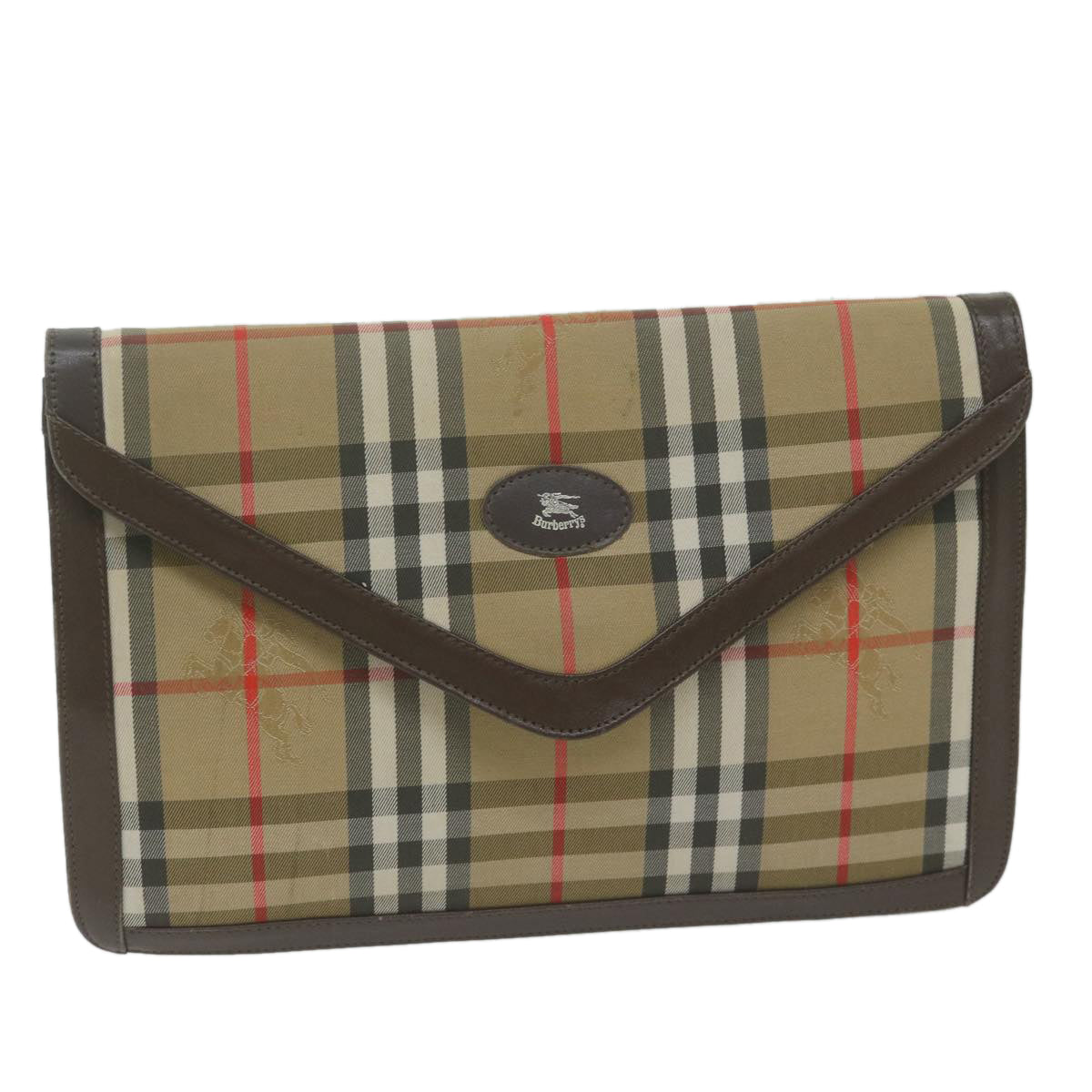 BURBERRYSs Nova Check Clutch Bag Nylon Canvas Beige Auth ac2675