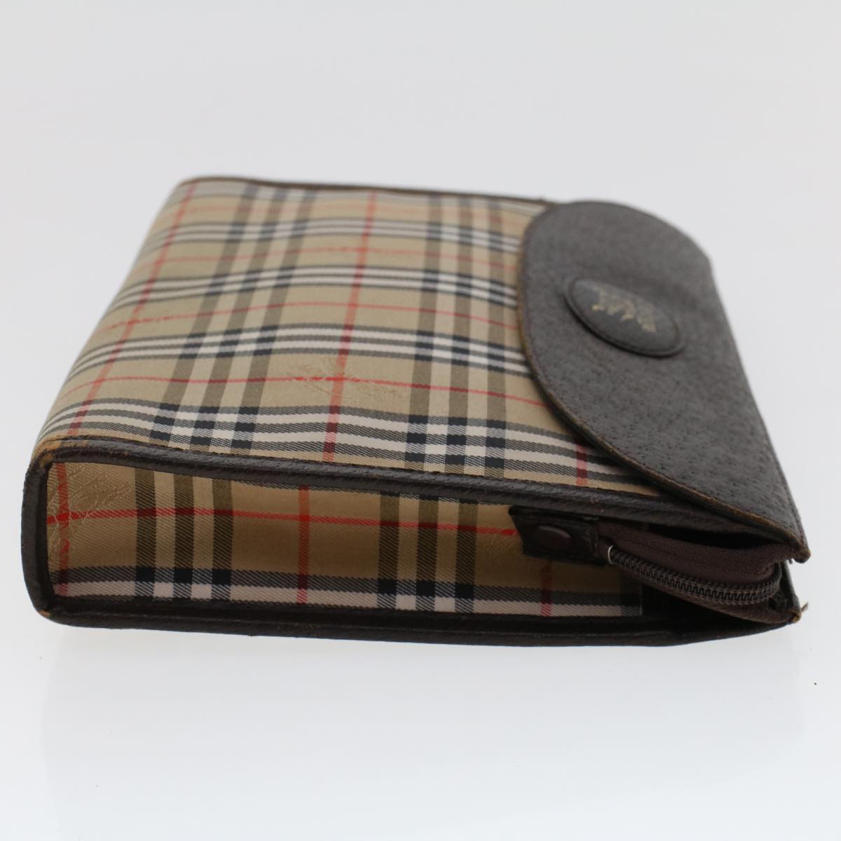 BURBERRYSs Nova Check Clutch Bag Nylon Leather Beige Auth am4674
