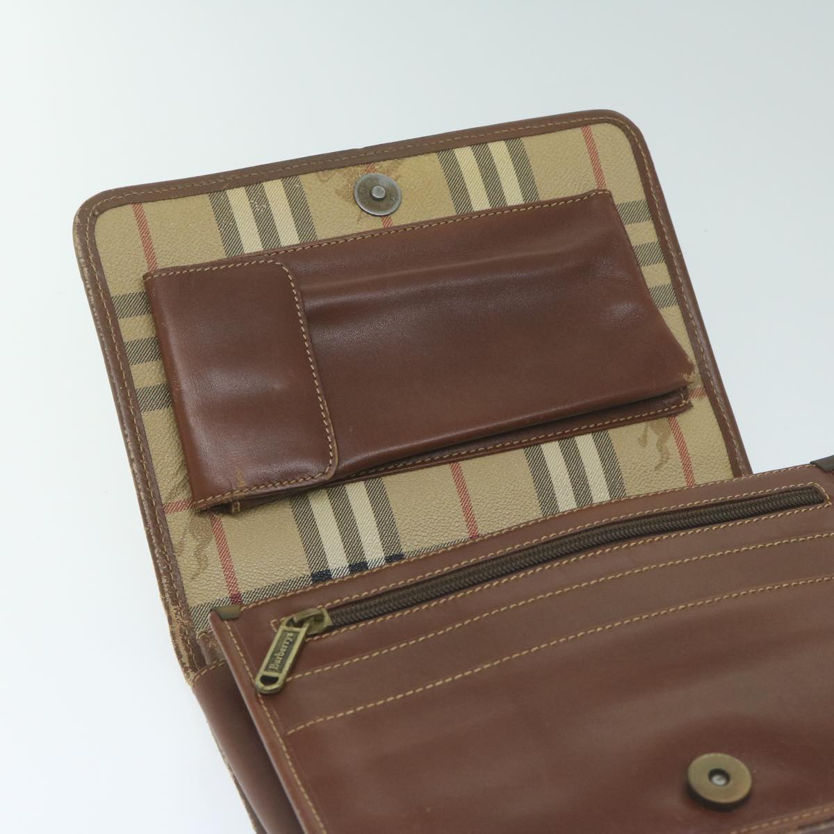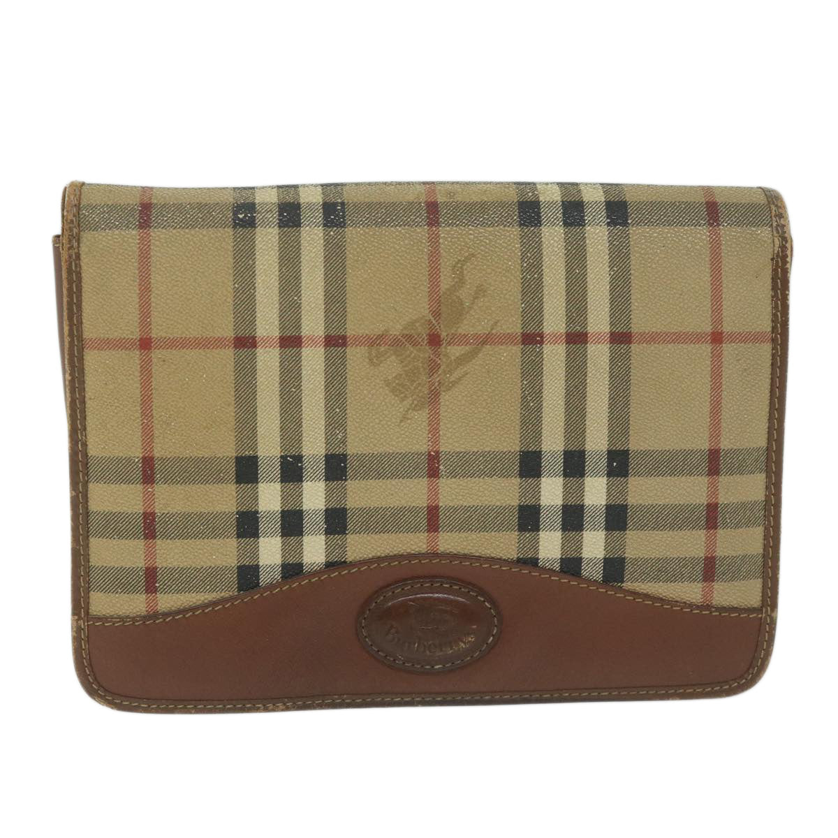 BURBERRYSs Nova Check Clutch Bag PVC Leather Beige Auth bs11501