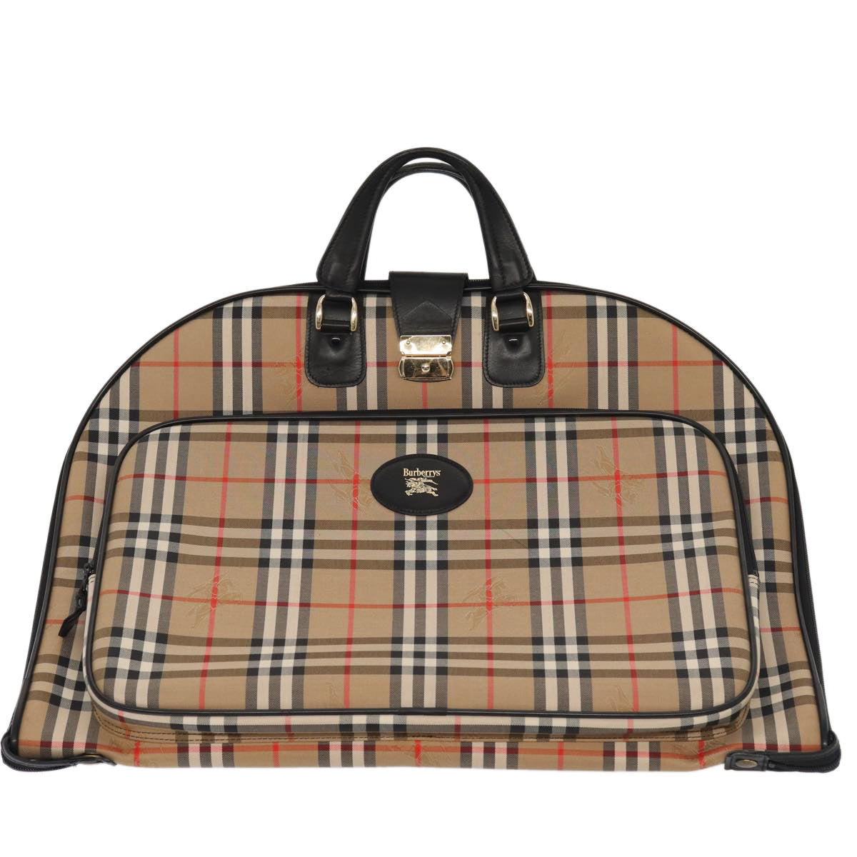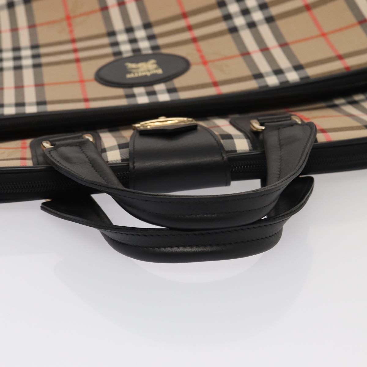 BURBERRYSs Nova Check Garment Cover Canvas Leather Beige Black gold Auth 86956