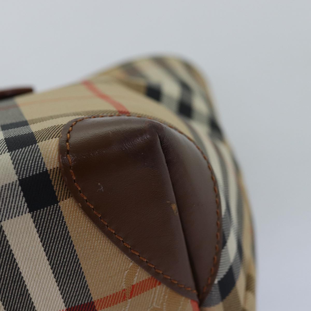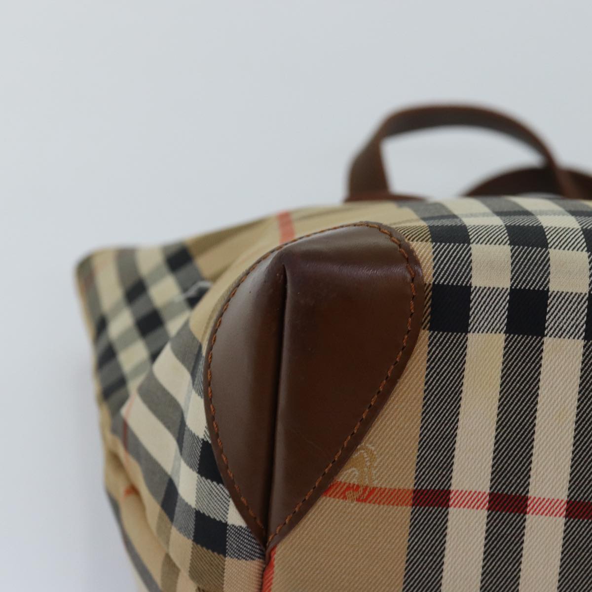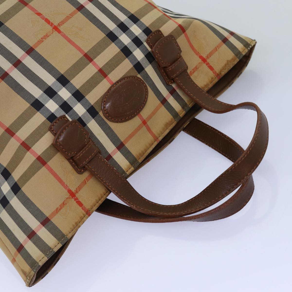 BURBERRYSs Nova Check Hand Bag Canvas Beige Auth bs14688