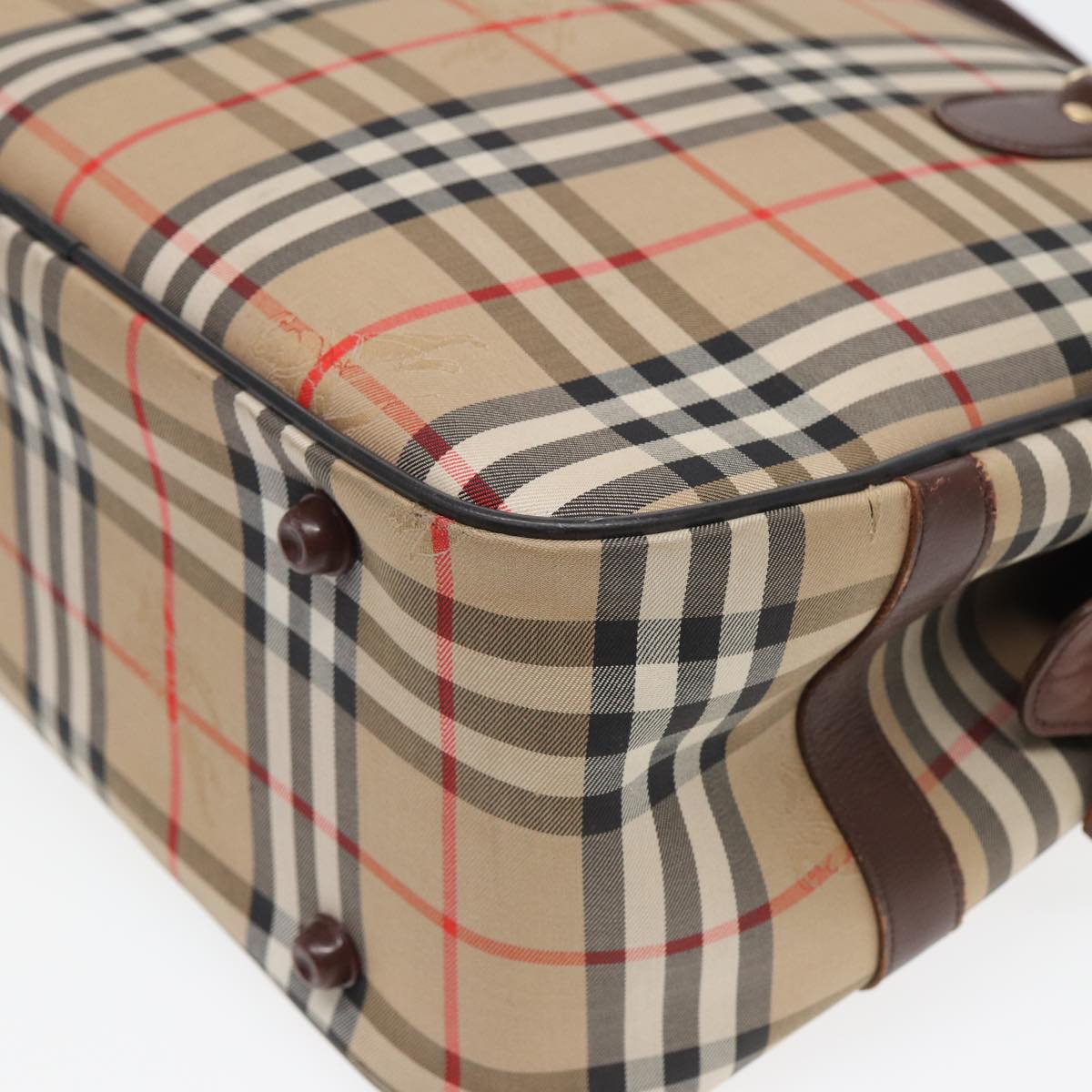 BurberrySs Nova Check Hand Bag Canvas Beige Auth bs16012