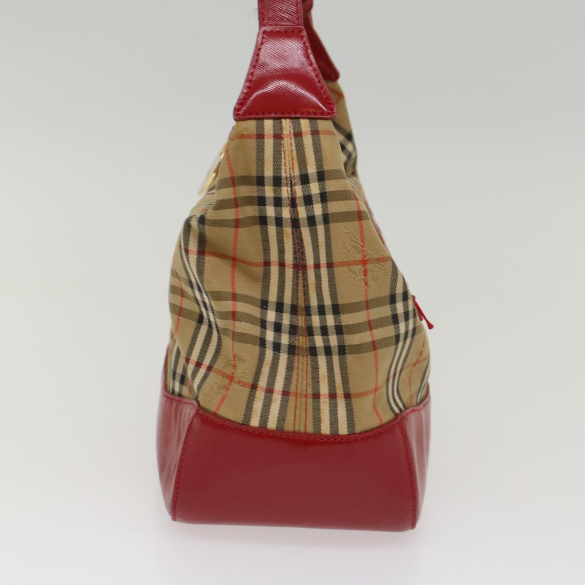BURBERRYSs Nova Check Hand Bag Canvas Leather Beige Red Auth 53395