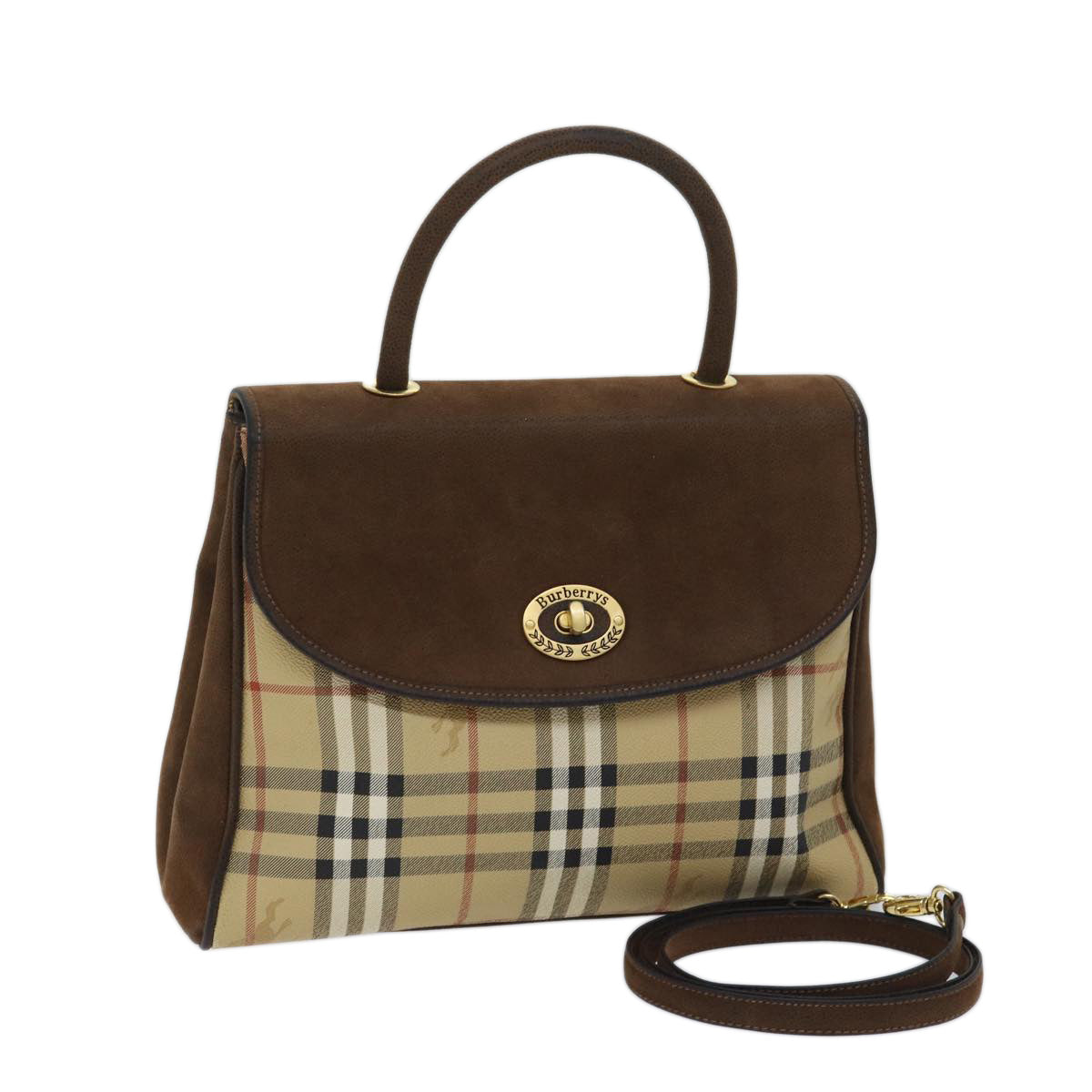 BURBERRYSs Nova Check Hand Bag PVC 2way Brown Auth yk11758