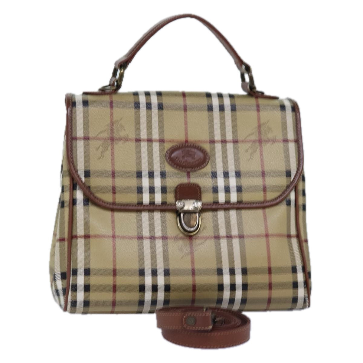 BURBERRYSs Nova Check Hand Bag PVC Leather 2way Beige Auth 76101