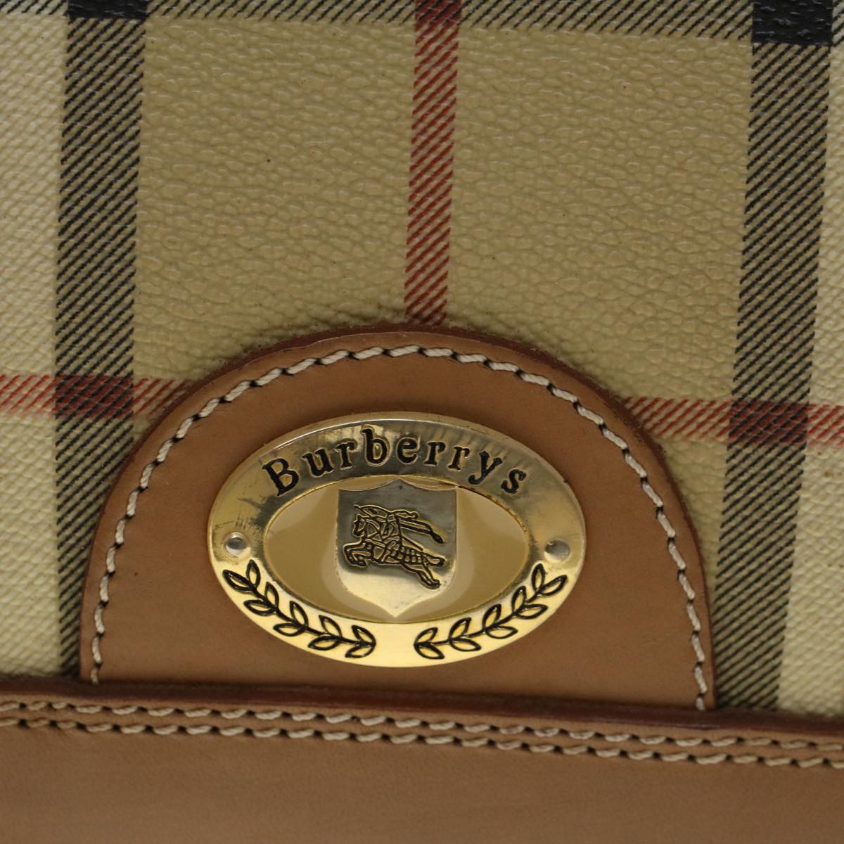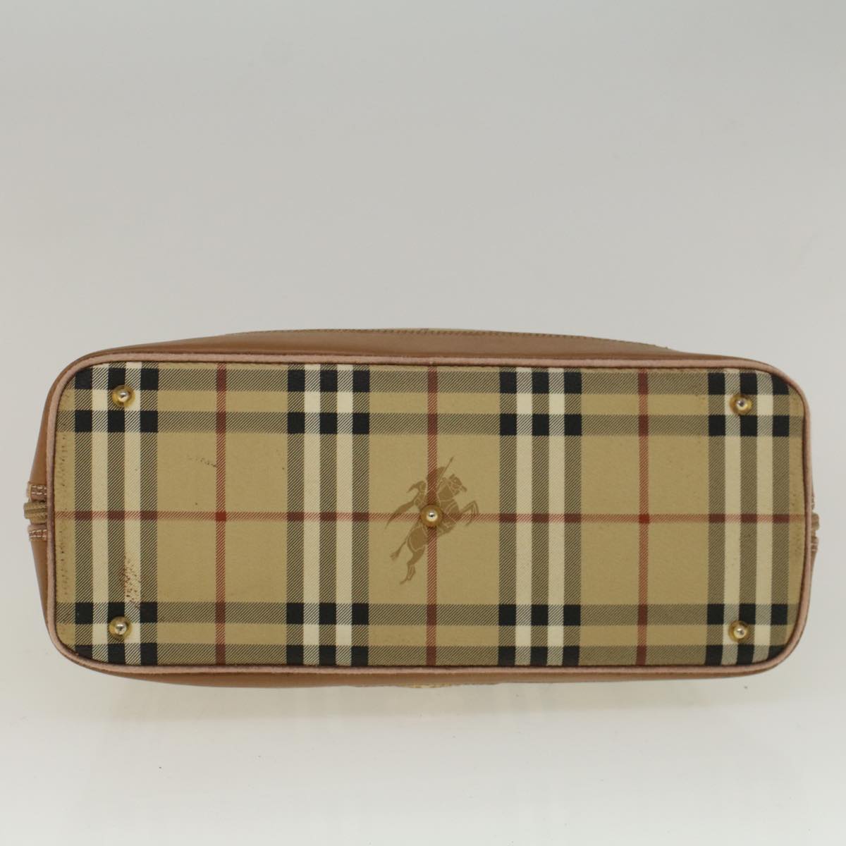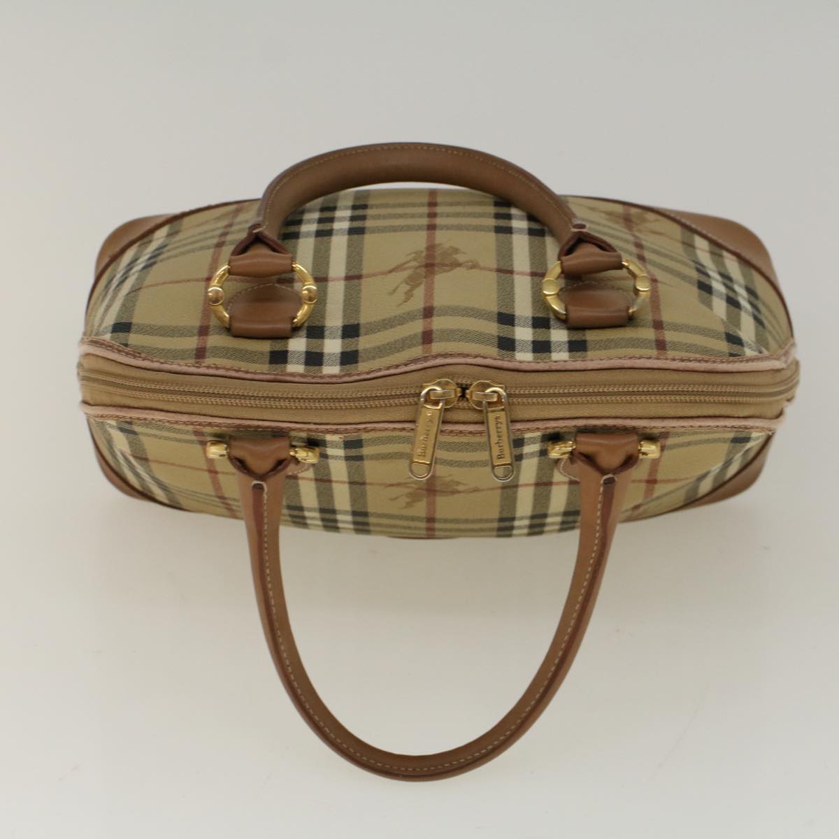 BurberrySs Nova Check Hand Bag PVC Leather 2way Beige Black Auth 58089