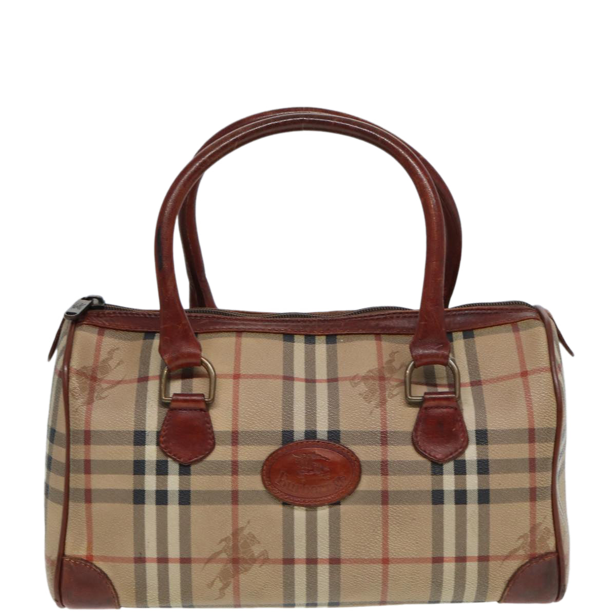 BURBERRYSs Nova Check Hand Bag PVC Leather Beige Auth mr276
