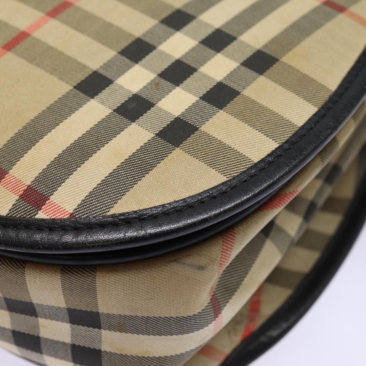 BURBERRYSs Nova Check Shoulder Bag Canvas Beige Black Silver Auth mr460