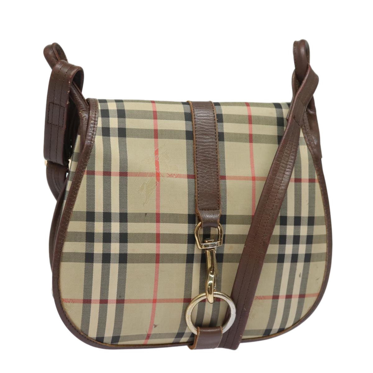 BURBERRYSs Nova Check Shoulder Bag Canvas Leather Beige Brown Auth bs16020