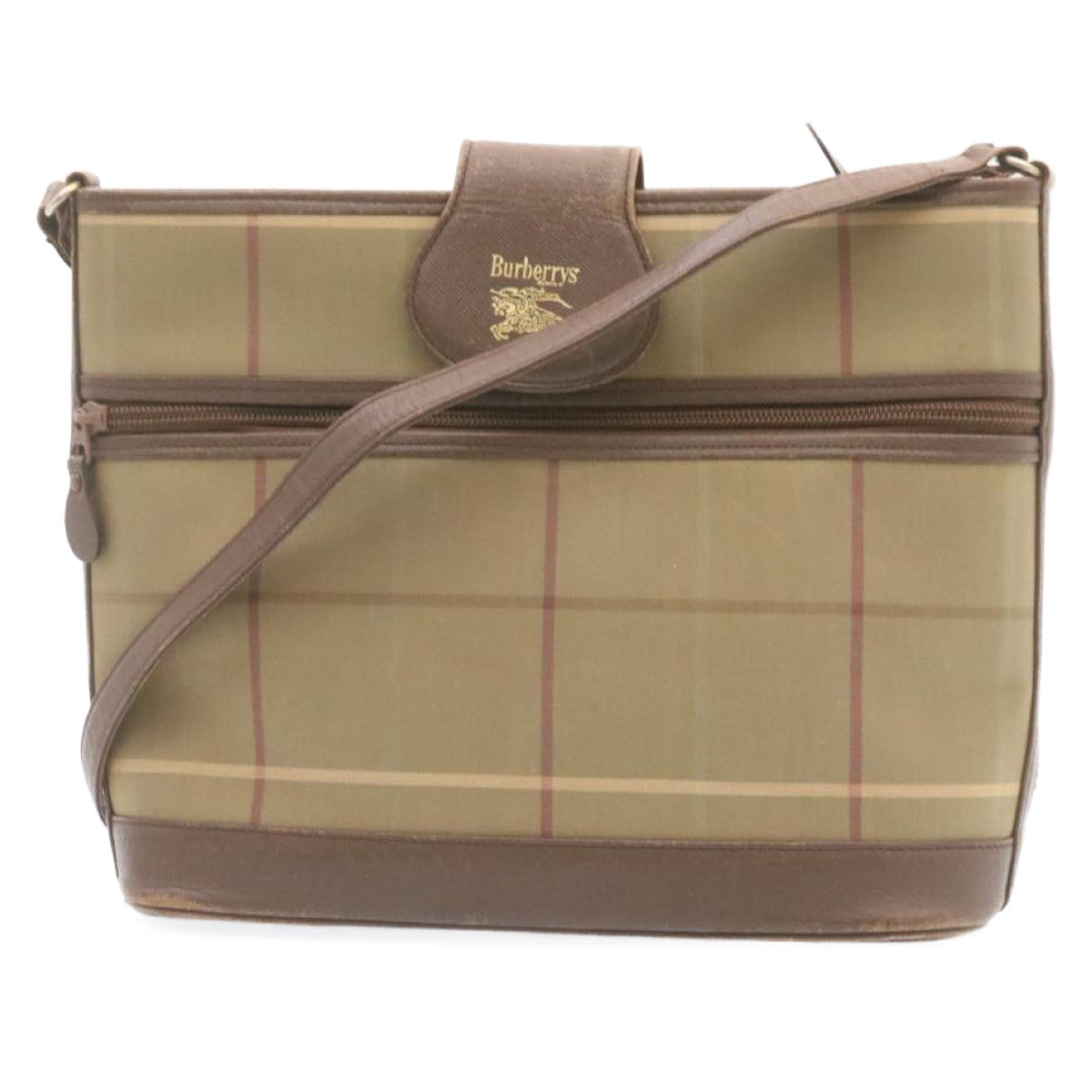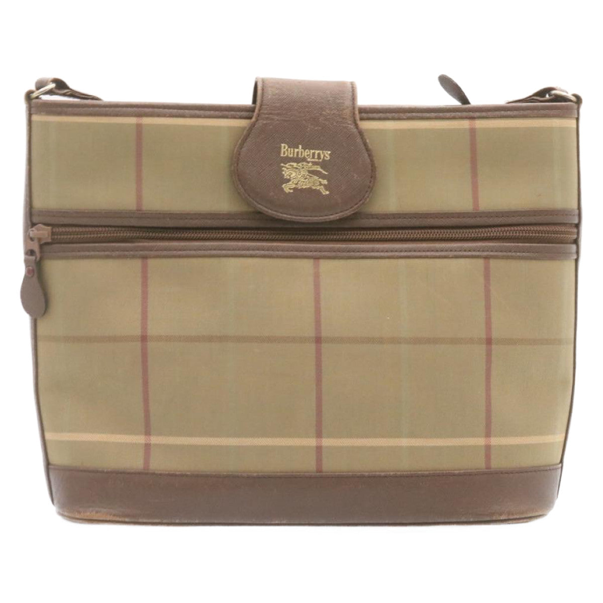 BURBERRYSS Nova Check Shoulder Bag Khaki Brown Canvas Auth q018