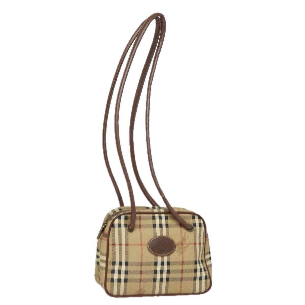 BURBERRYSs Nova Check Shoulder Bag PVC Leather Beige Auth 78850