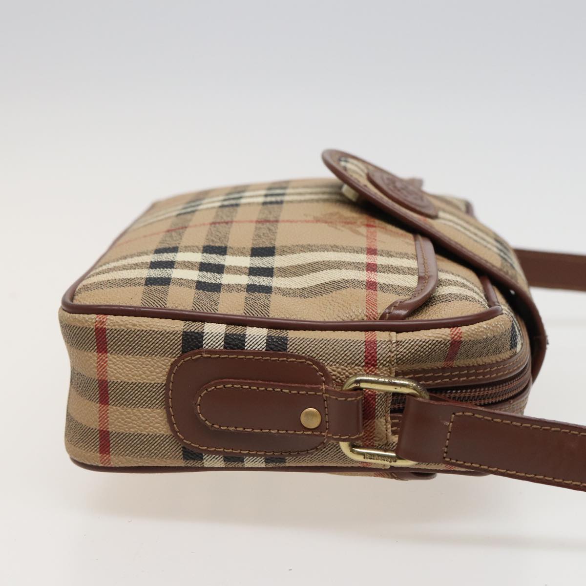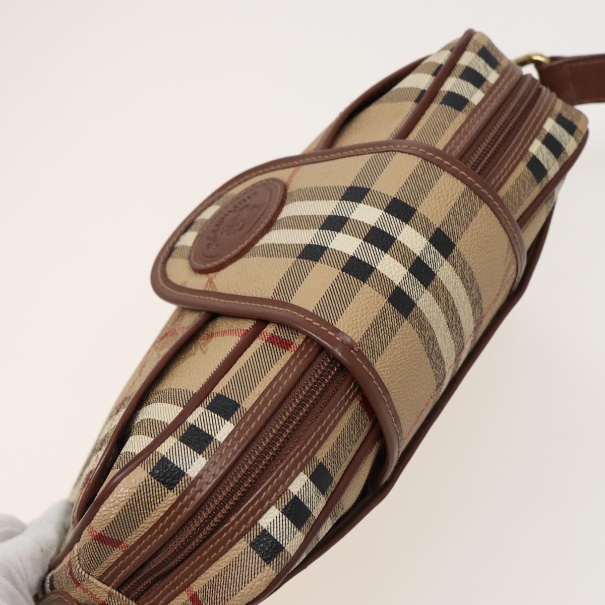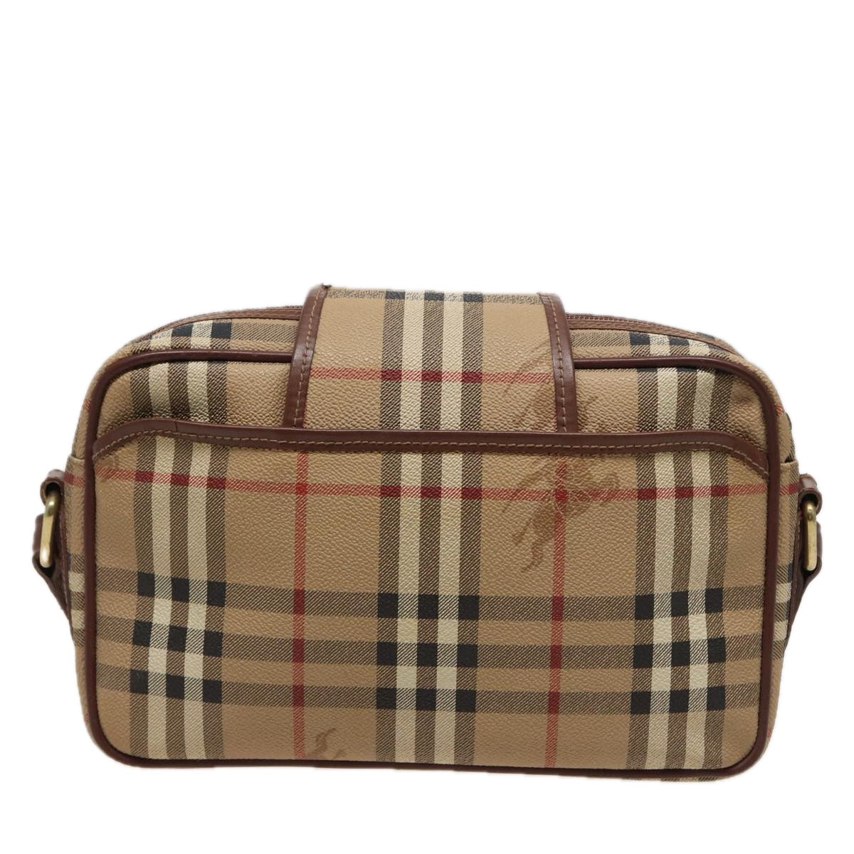 BURBERRYSs Nova Check Shoulder Bag PVC Leather Beige Auth mr288
