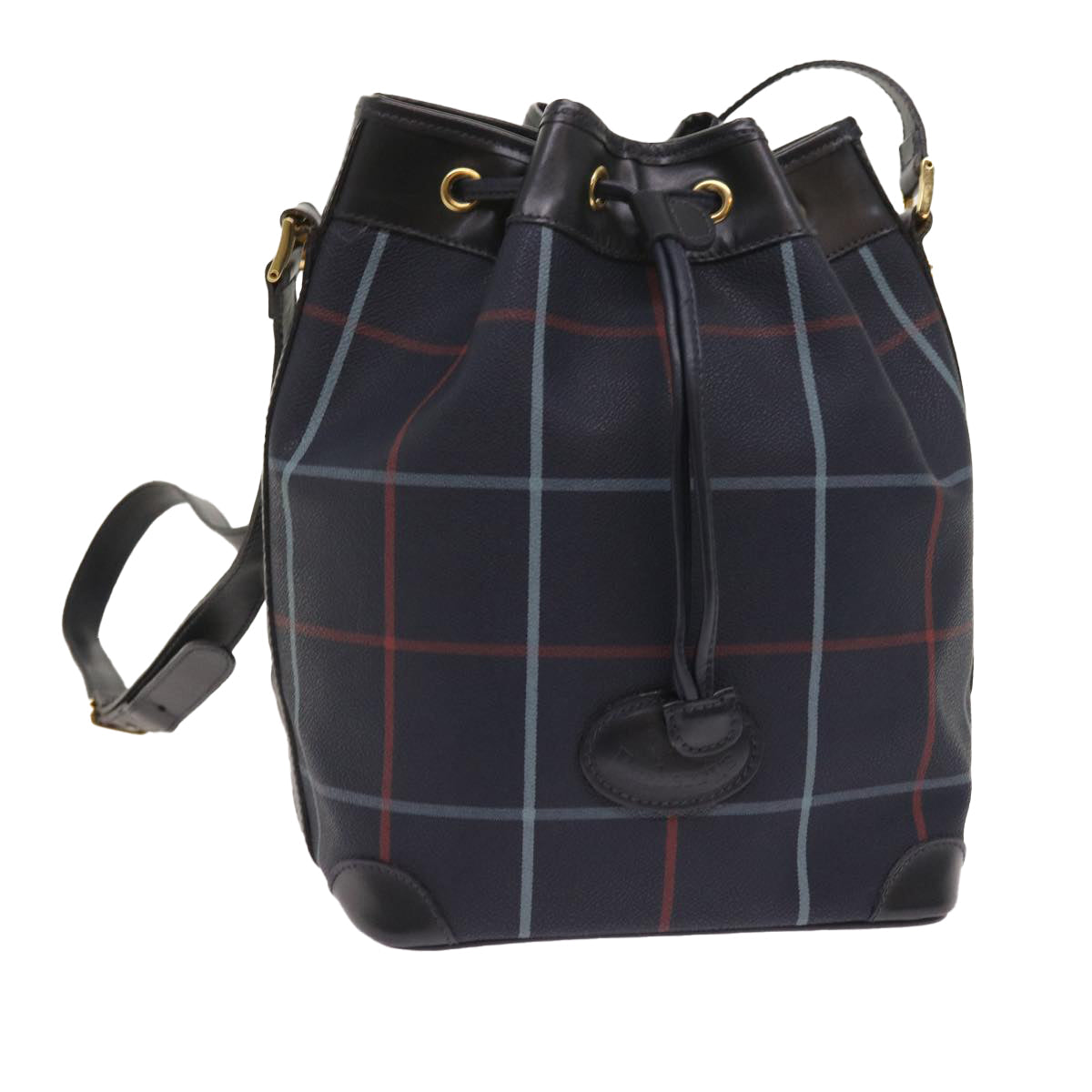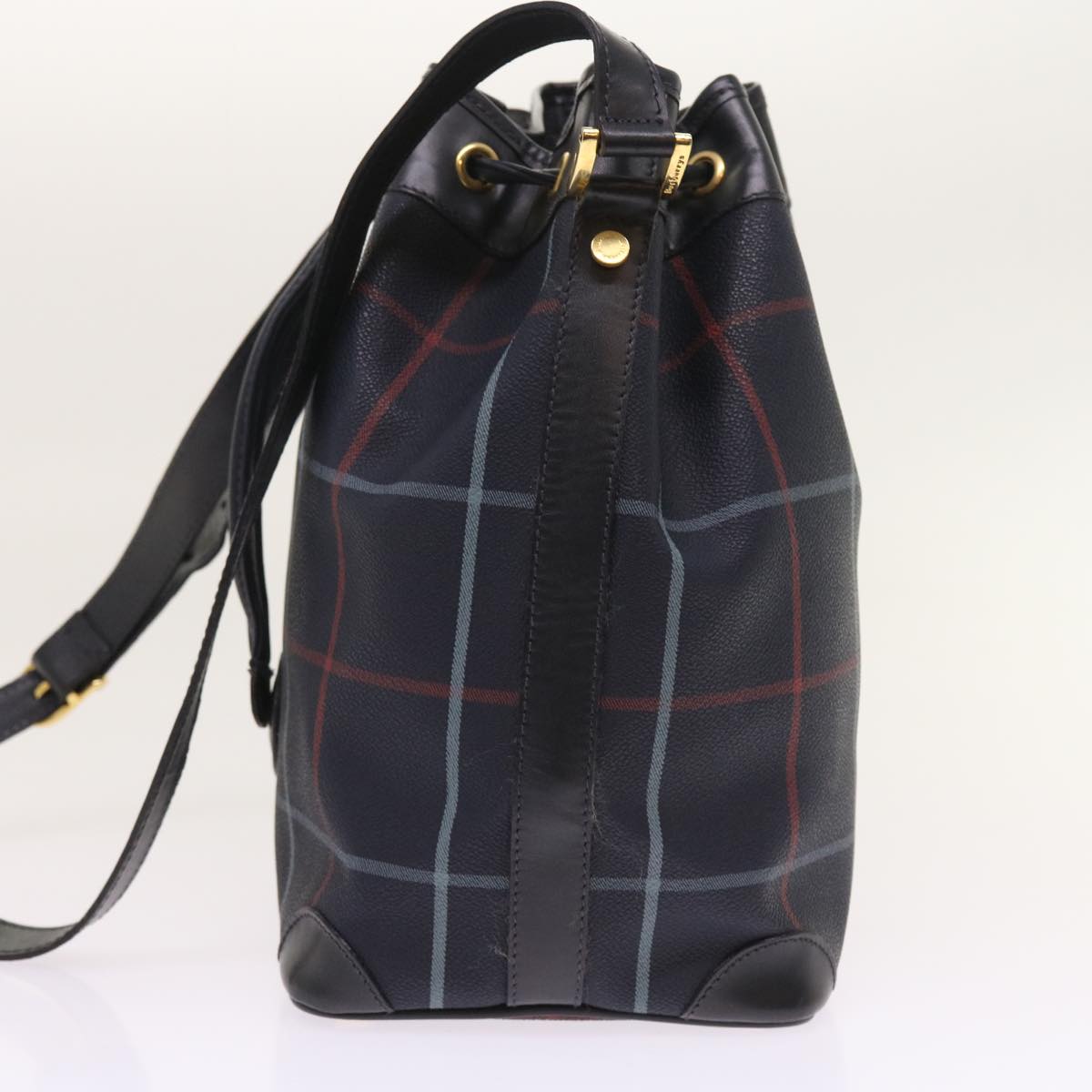BURBERRYSs Nova Check Shoulder Bag PVC Leather Navy Auth th4082
