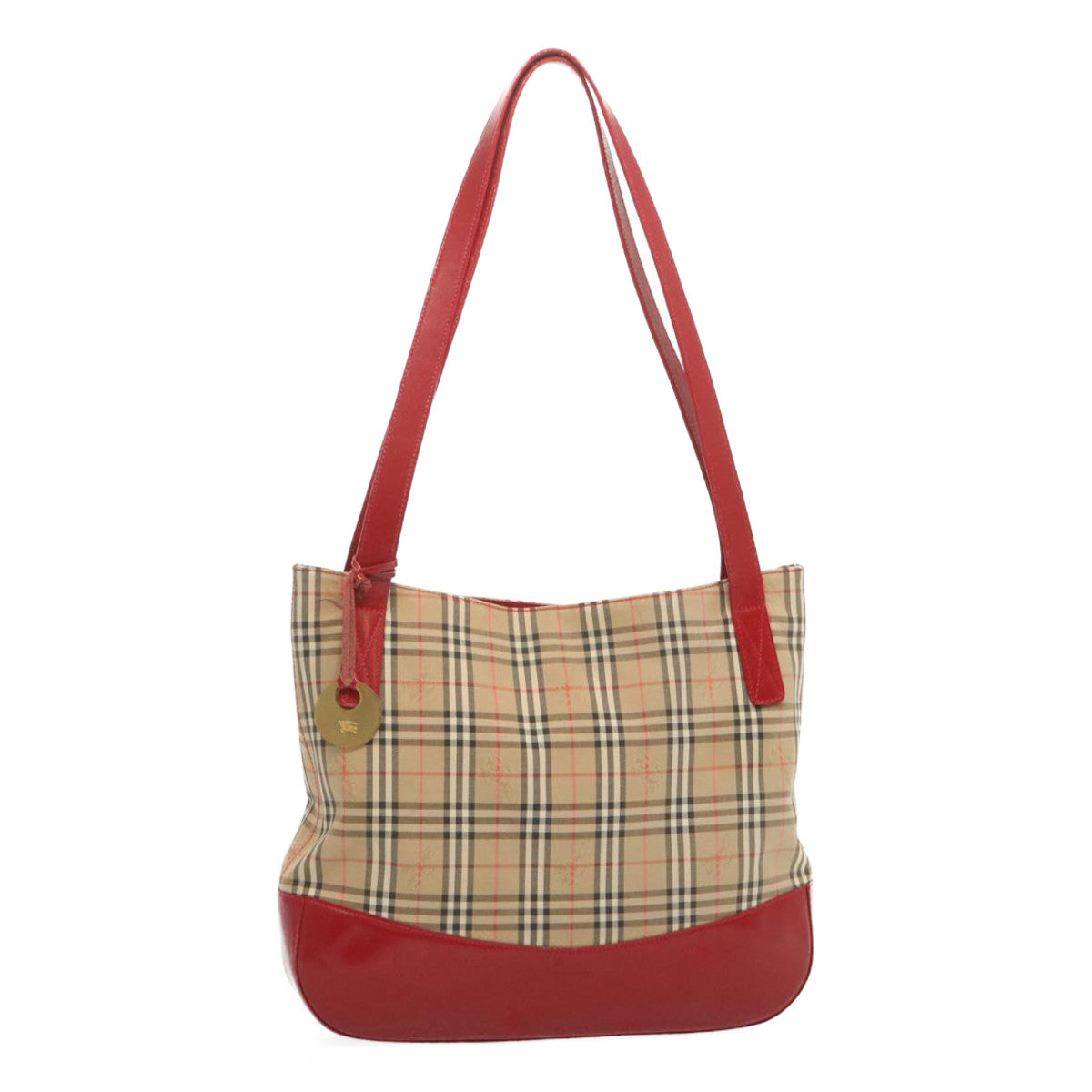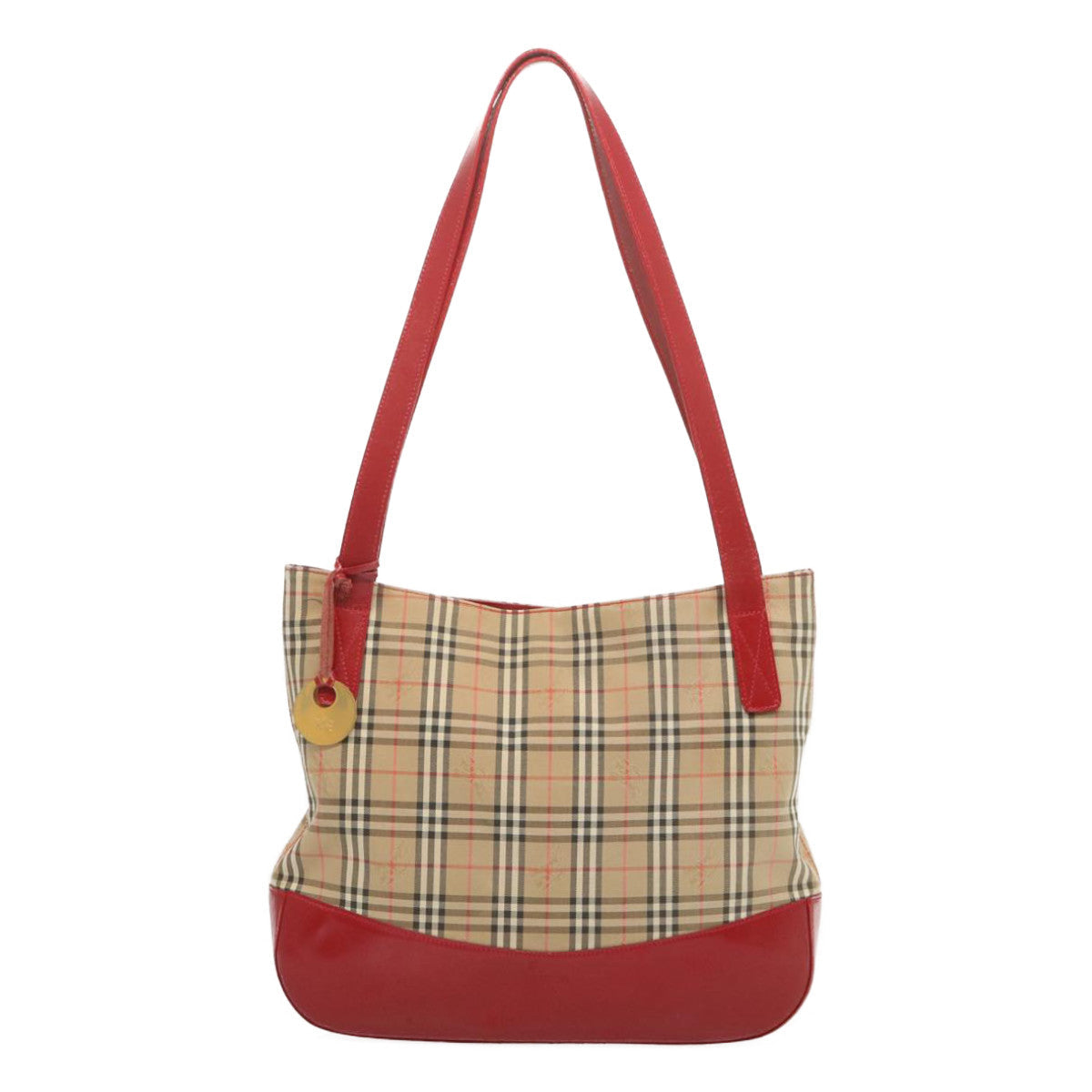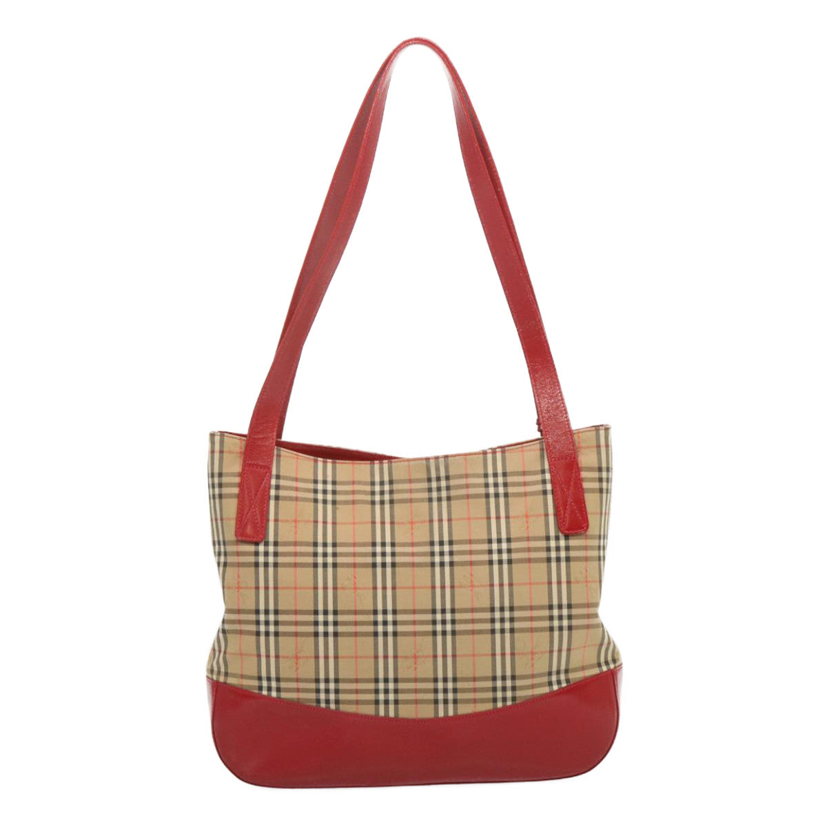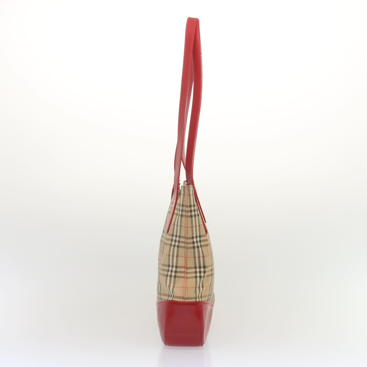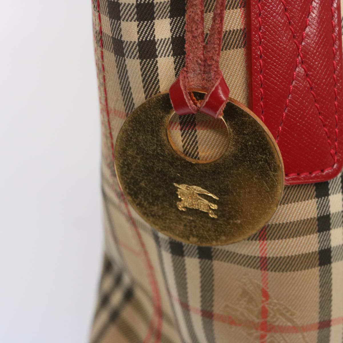 BURBERRYSs Nova Check Tote Bag Canvas Beige Red Auth 67775