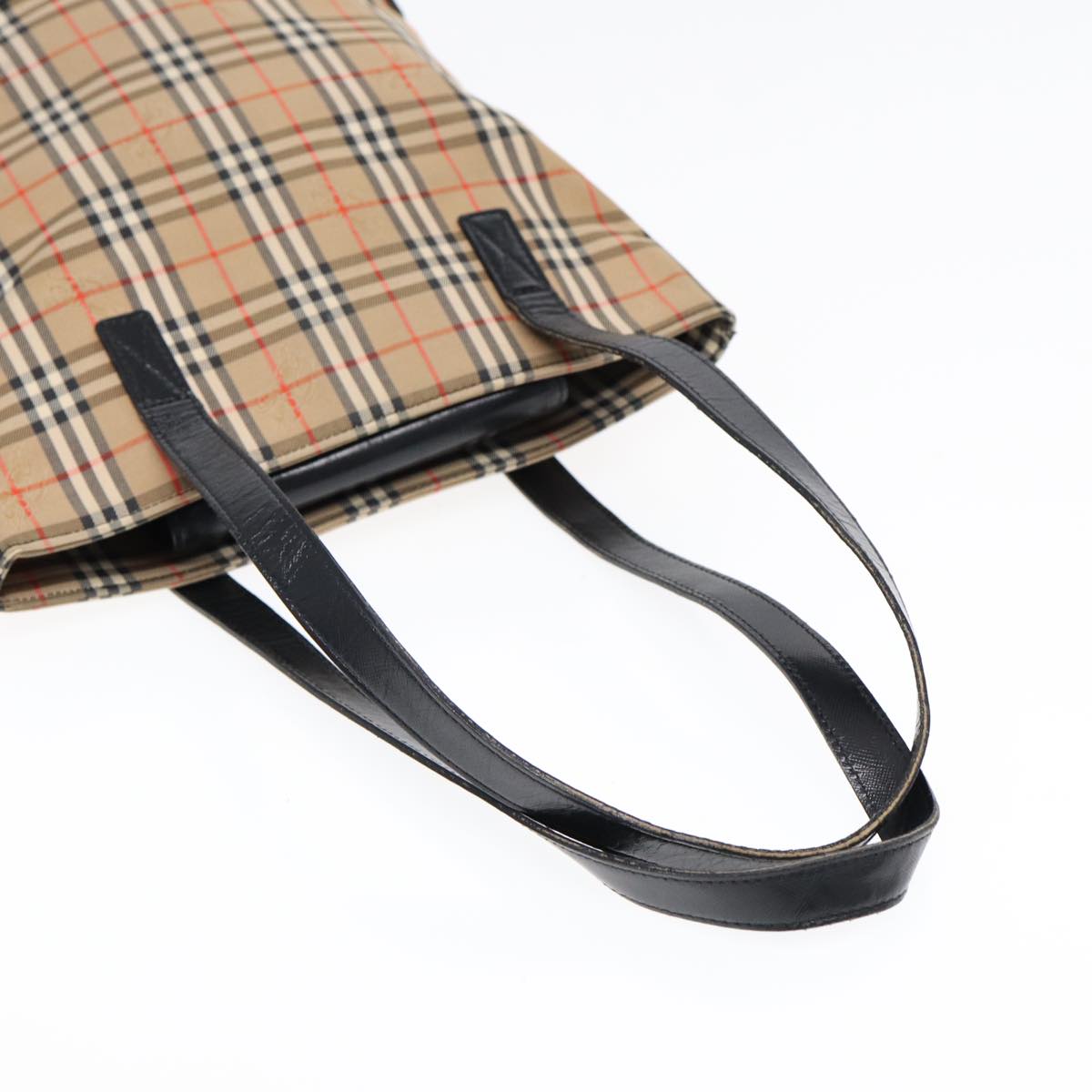 BURBERRYSs Nova Check Tote Bag Canvas Leather Beige Black gold Auth 87170