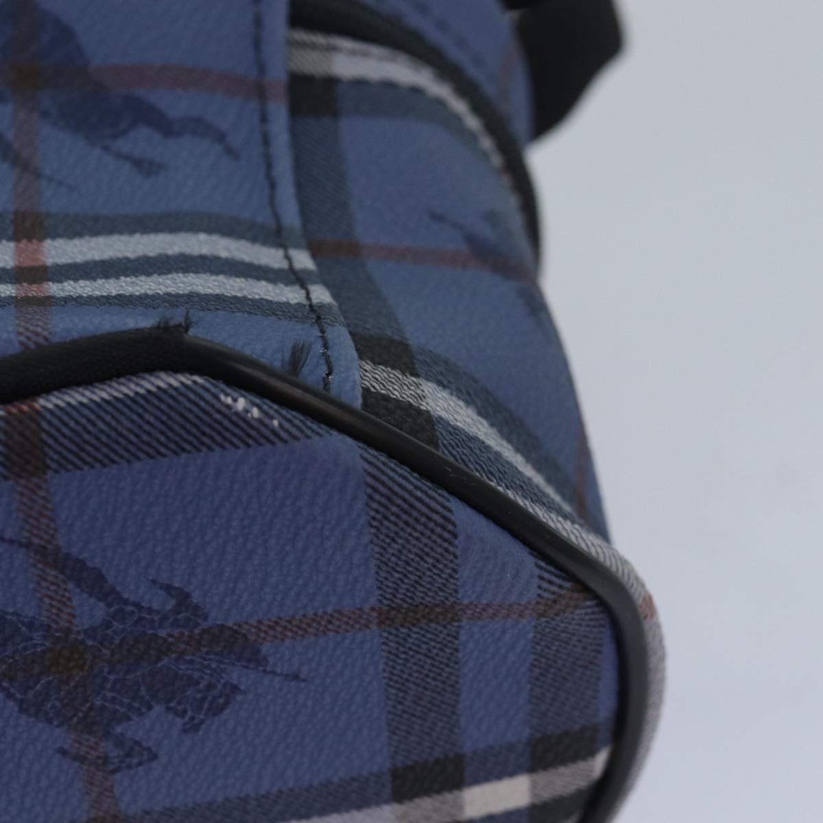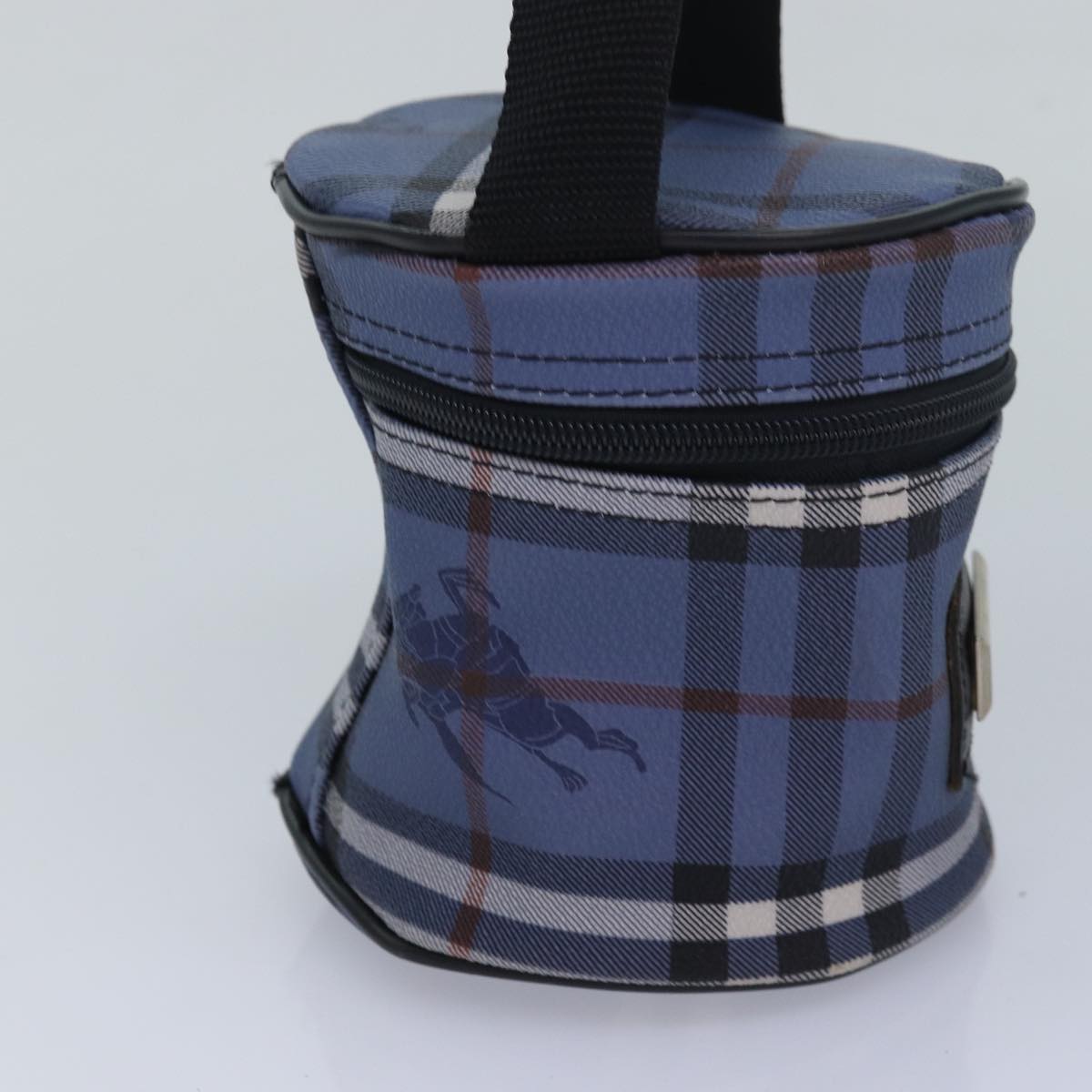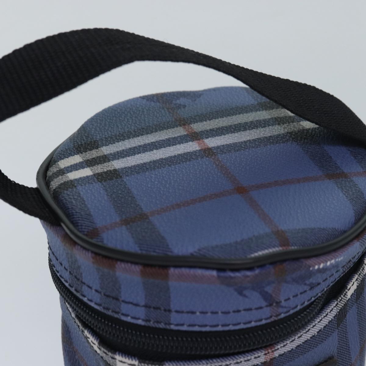 BURBERRYSs Nova Check Vanity Cosmetic Pouch PVC Leather Blue Auth ep4900