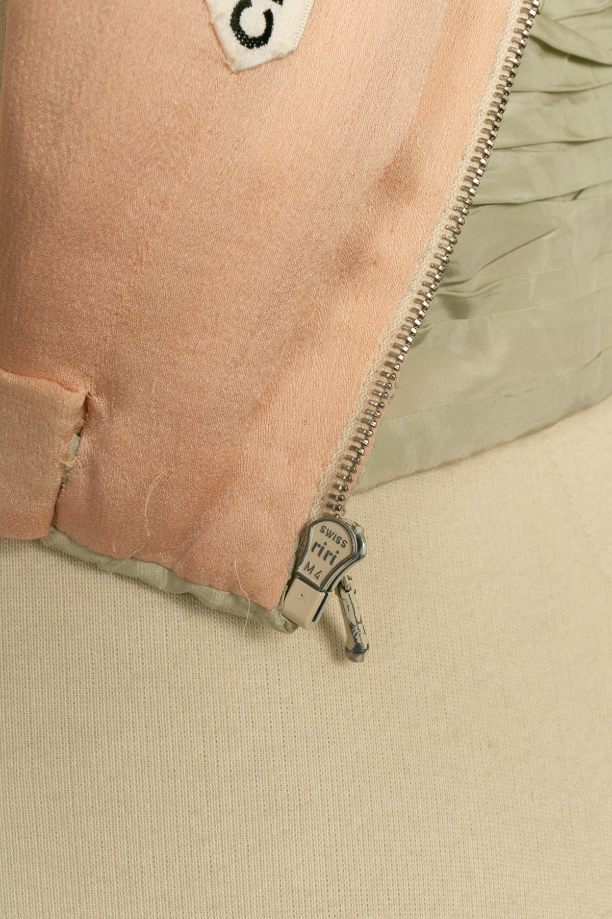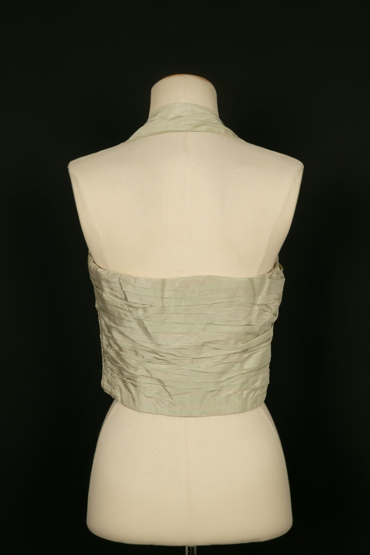CHANEL - Bustier Haute Couture en taffetas de soie et son étole dans les tons de vert. Aucune étiquette de taille ou de composition, il convient à un 36FR. Pièce datant des années 1985-1990.