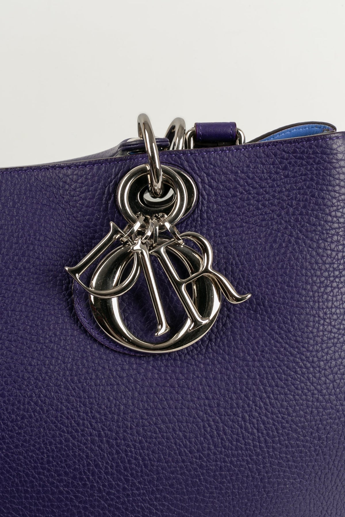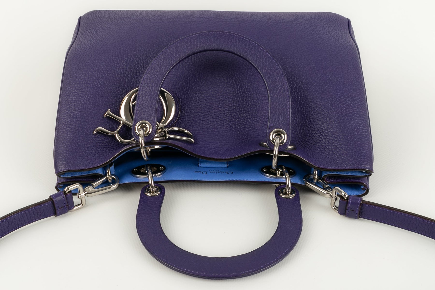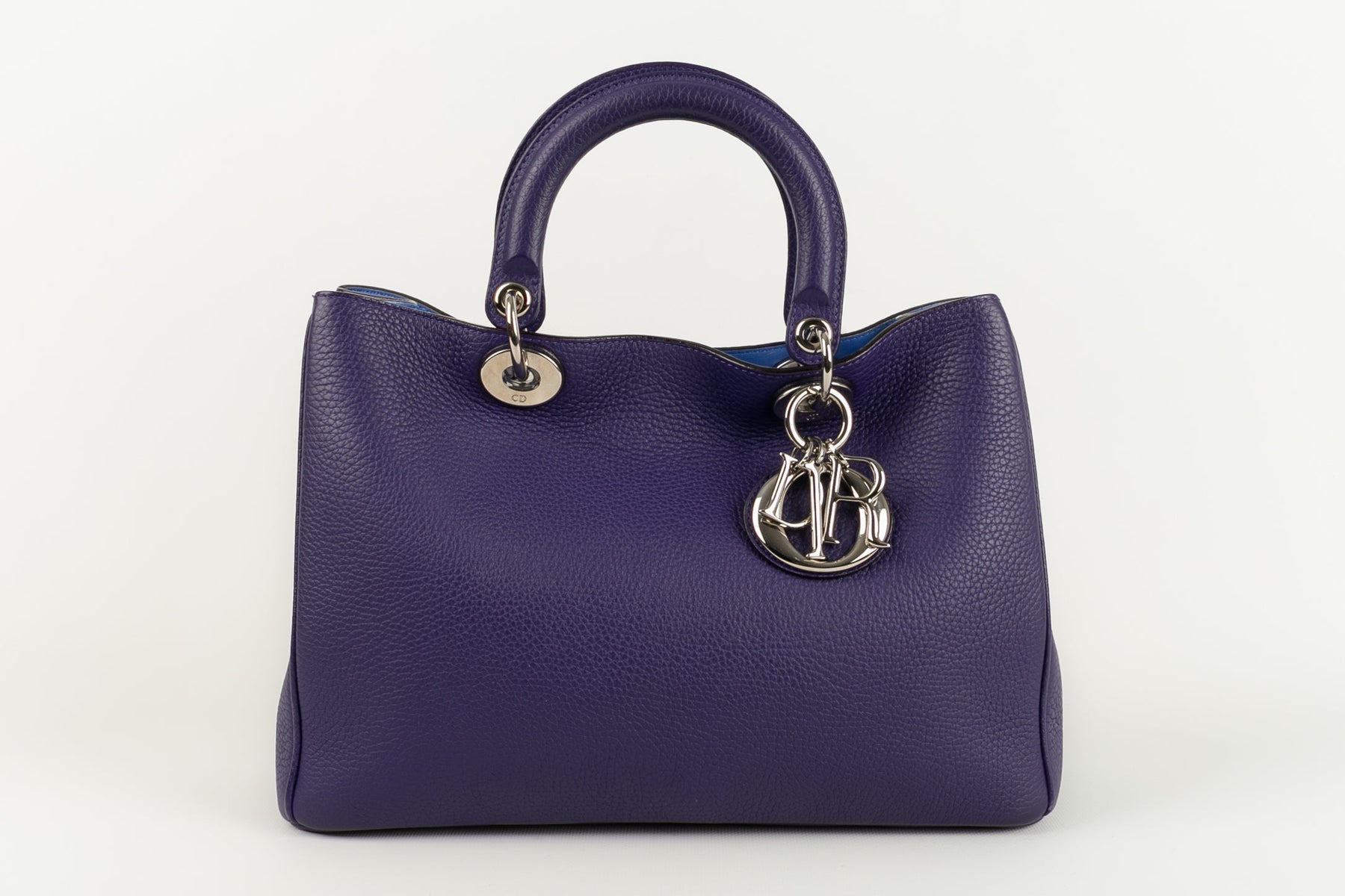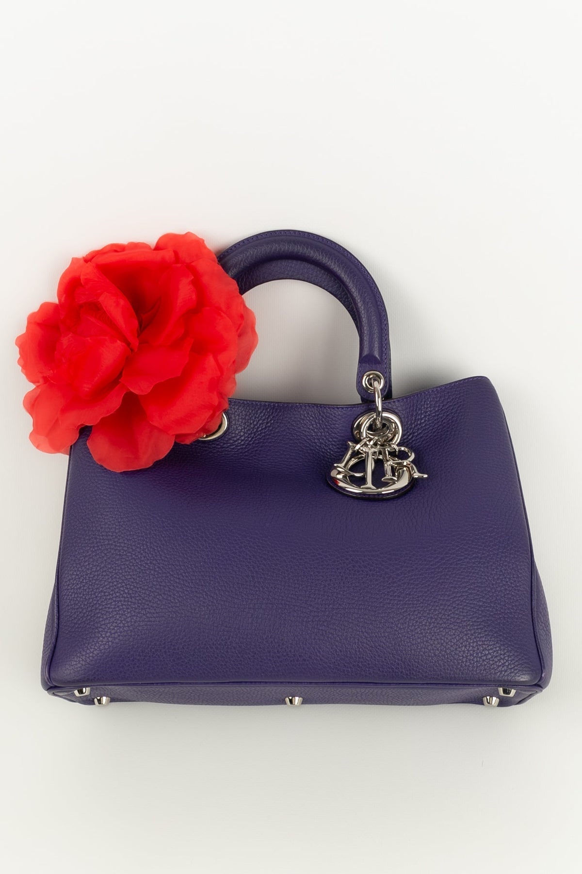DIOR - Sac en cuir grainé violet modèle 'Diorissimo" et attributs en métal argenté.