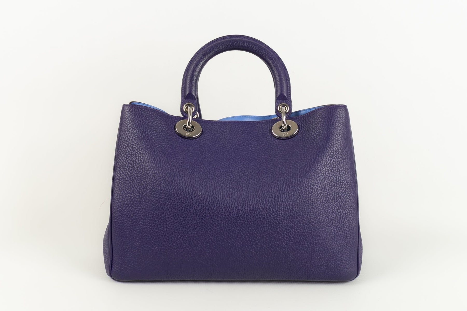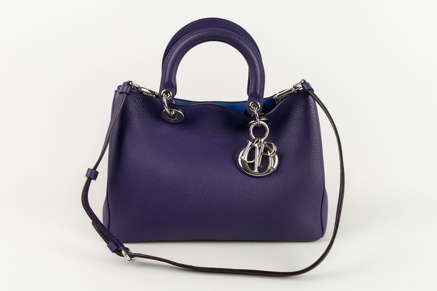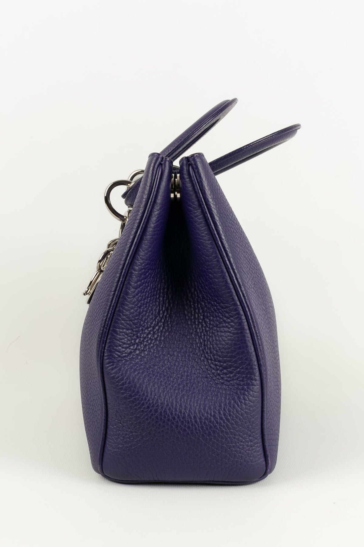 DIOR - Sac en cuir grainé violet modèle 'Diorissimo" et attributs en métal argenté.