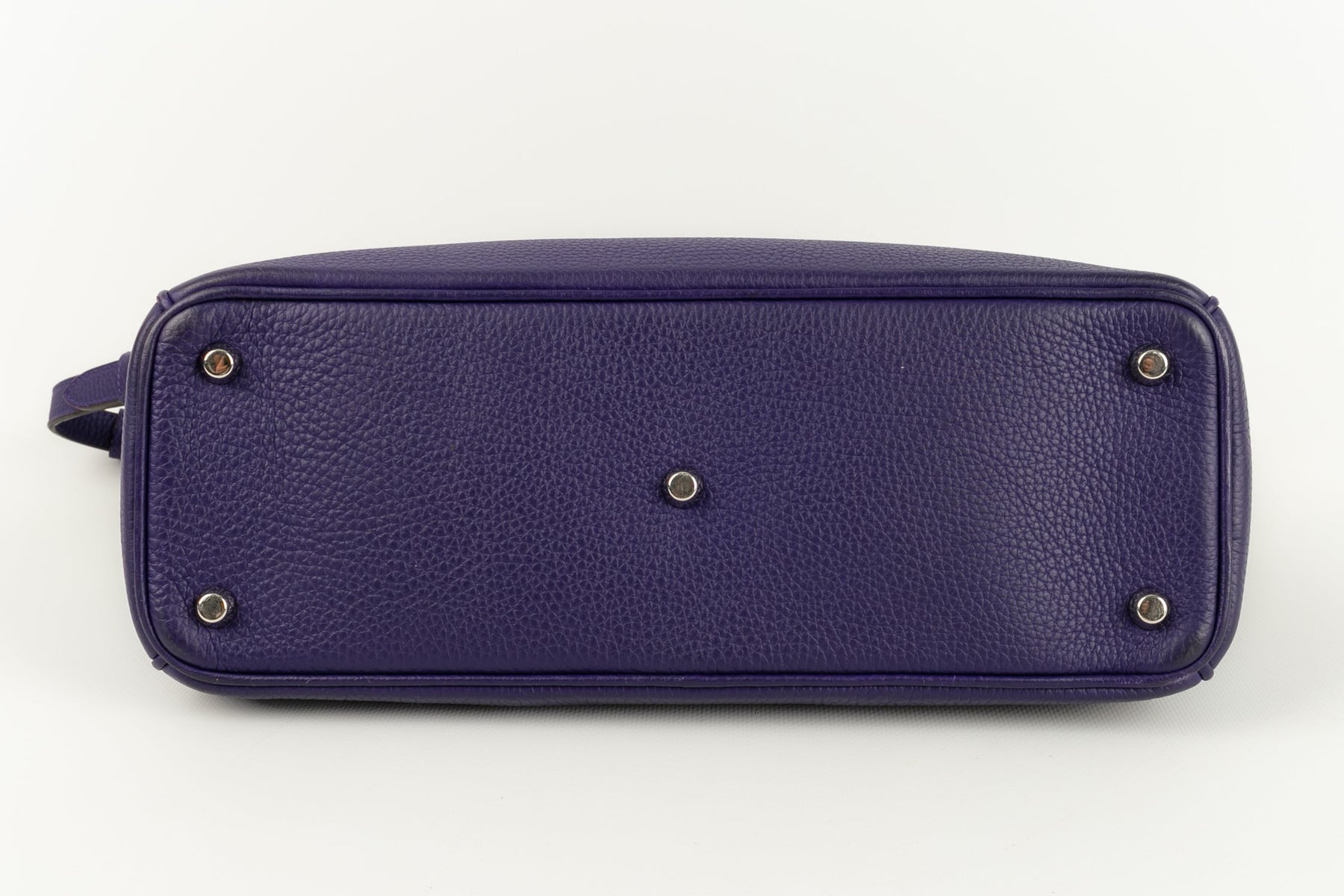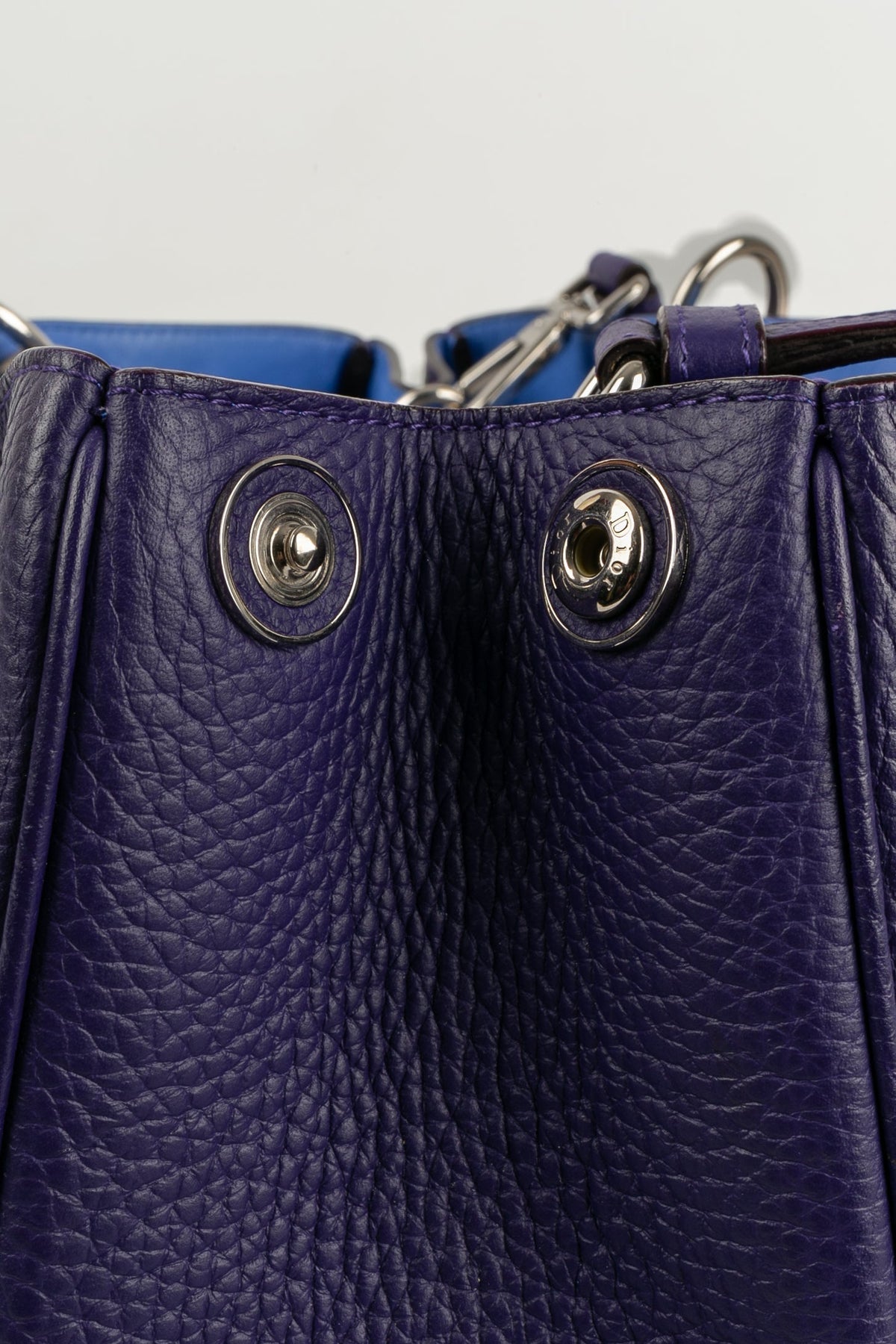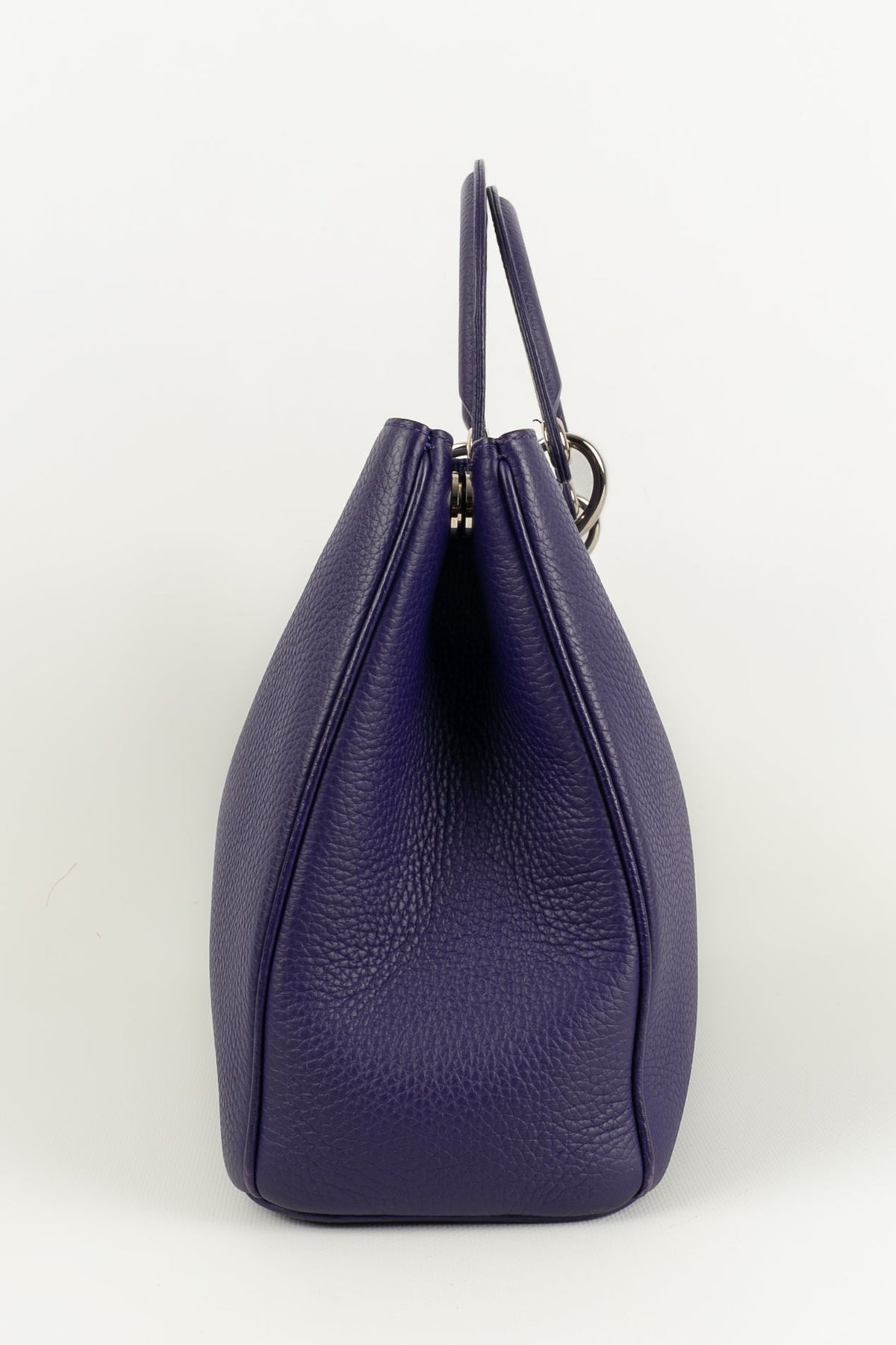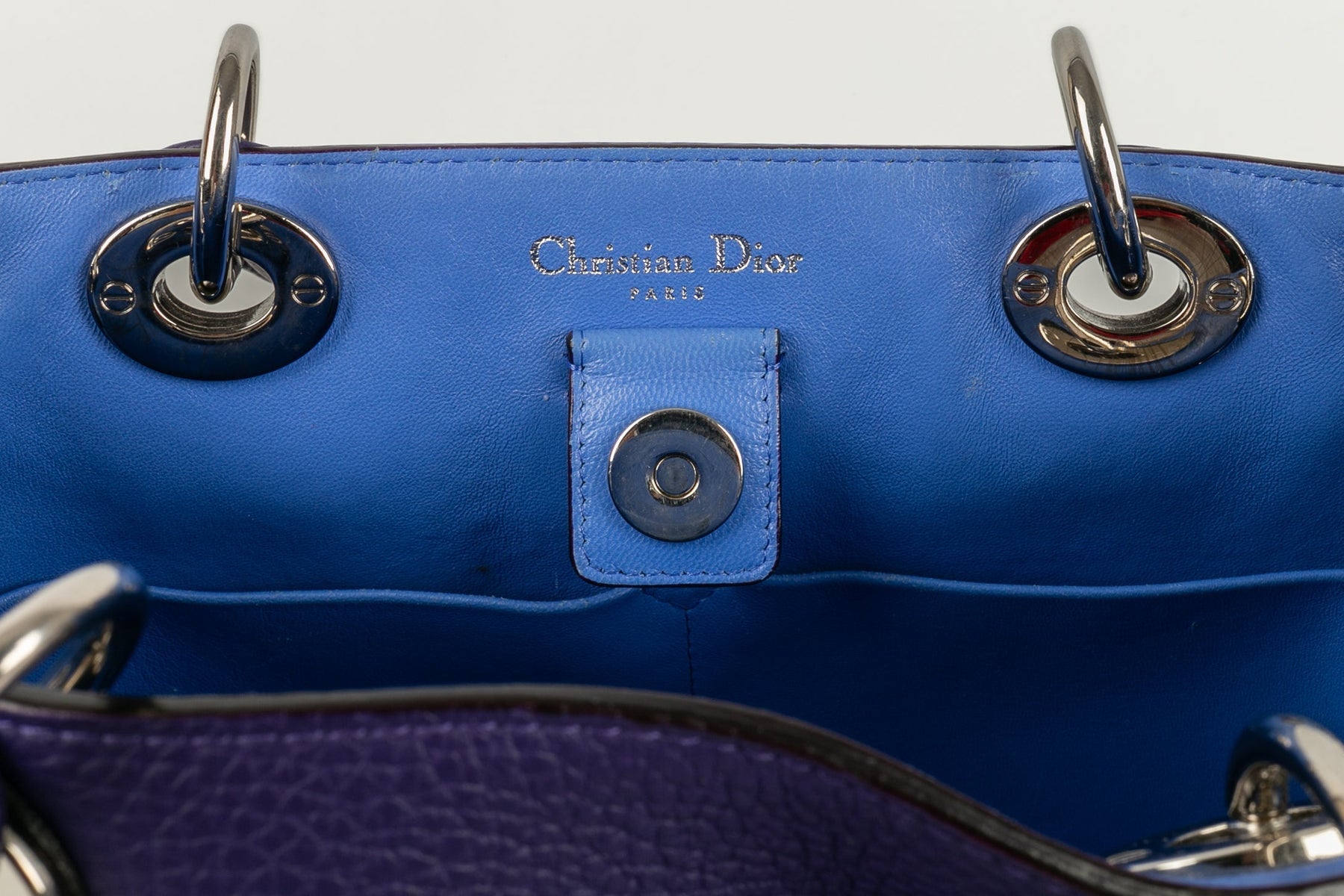 DIOR - Sac en cuir grainé violet modèle 'Diorissimo" et attributs en métal argenté.