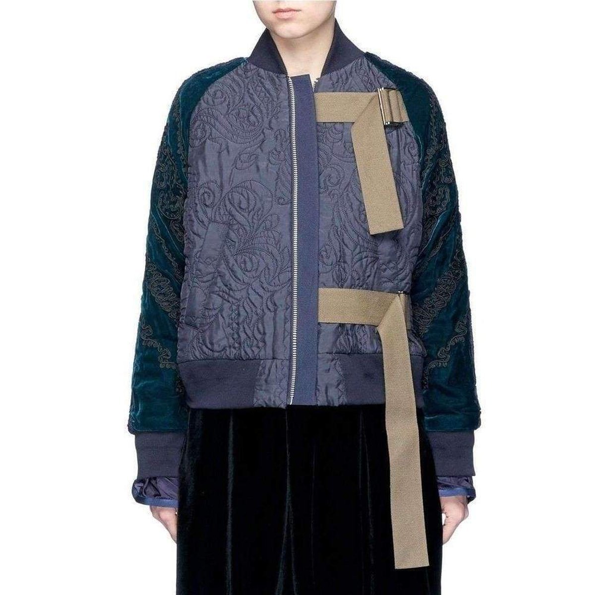 Velvet embroidered sleeves with ribbed cuffs