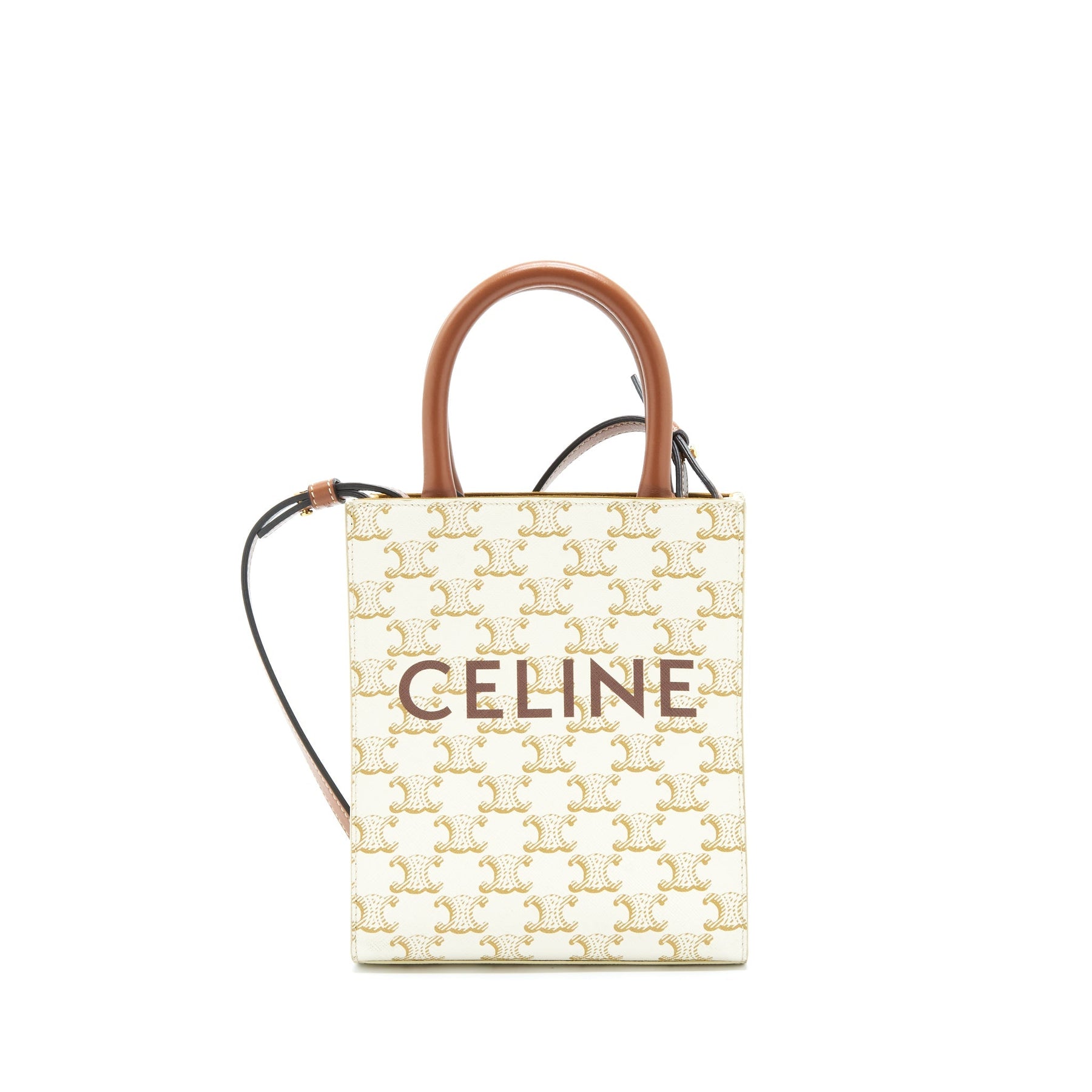 Celine Mini Vertical Tote Cabas In Triomphe Canvas/Calfskin White
