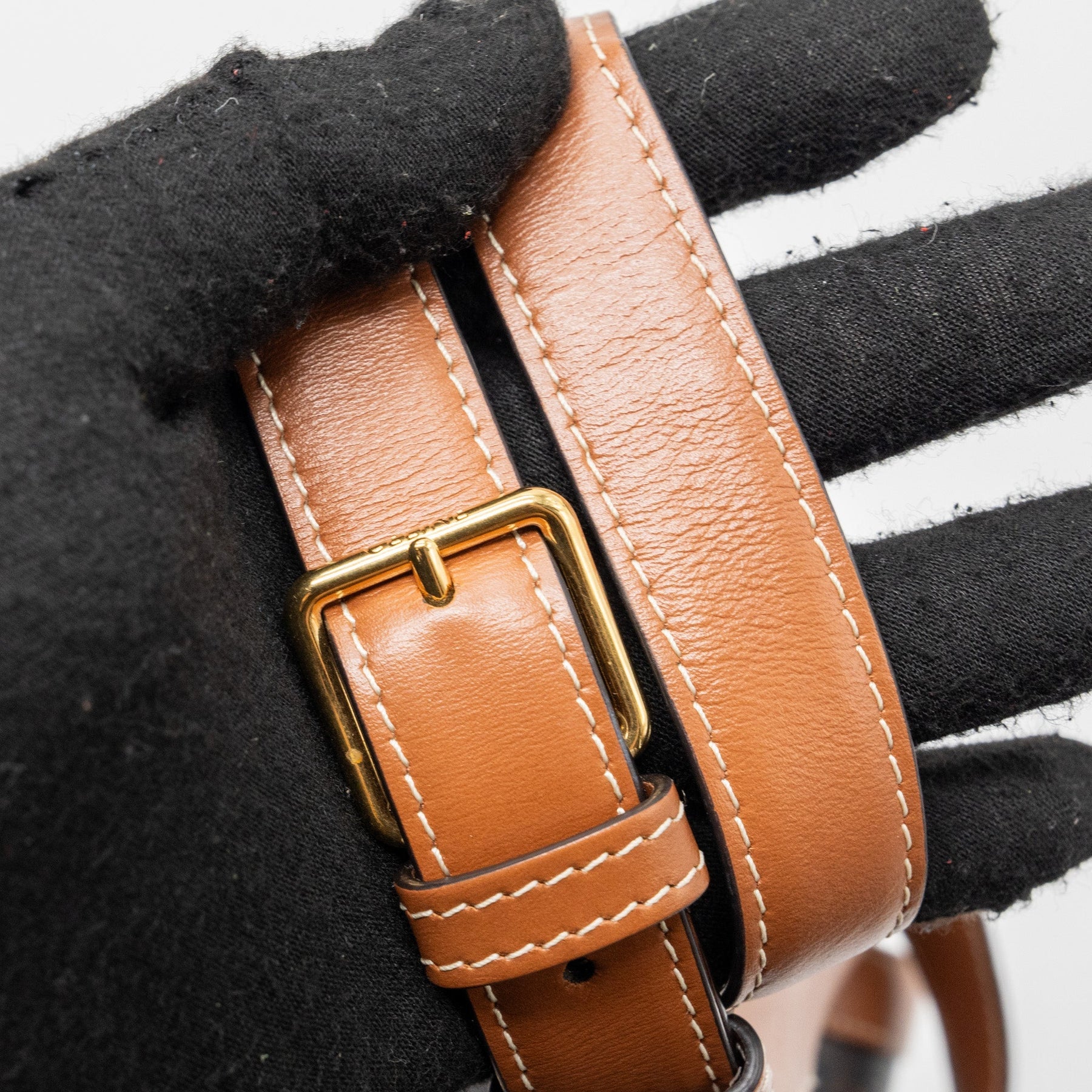 Well New (This item is in New condition with scratches on hardware, slight New and dents under the flap, a thread loose on shoulder strap.)