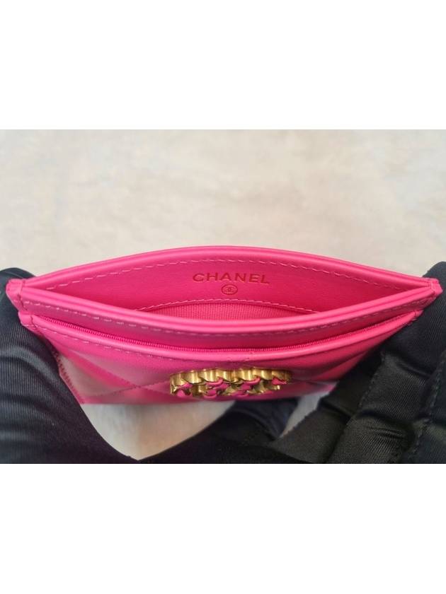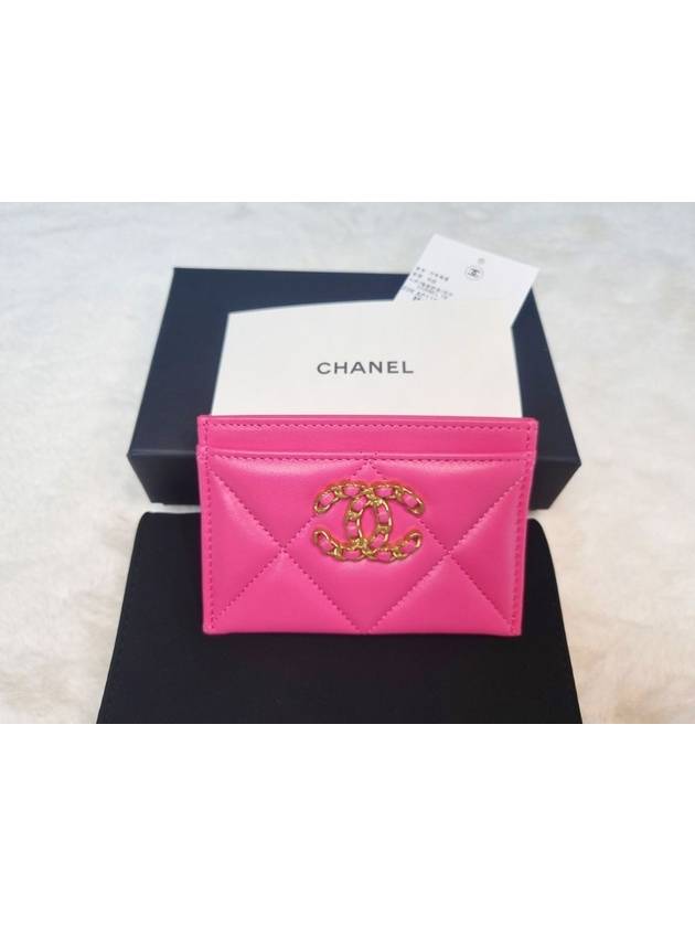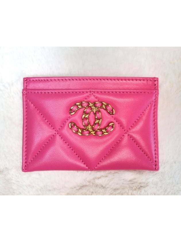 19 Gold Chain Logo Quilted Lambskin Card Wallet Pink Chanel