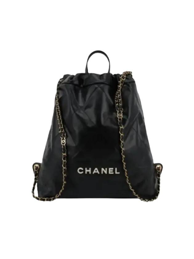 Product Name: 22 Shiny Calfskin Chain Backpack Black