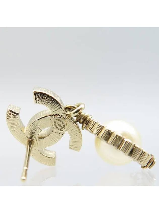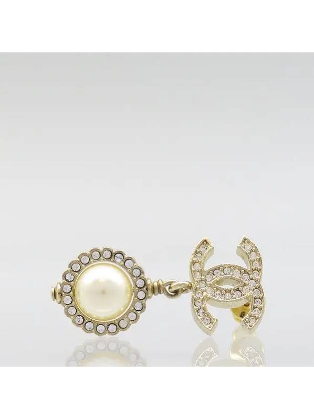 AB2307 CC Piercing Crystal Around Pearl Drop Gold Earrings Chanel
