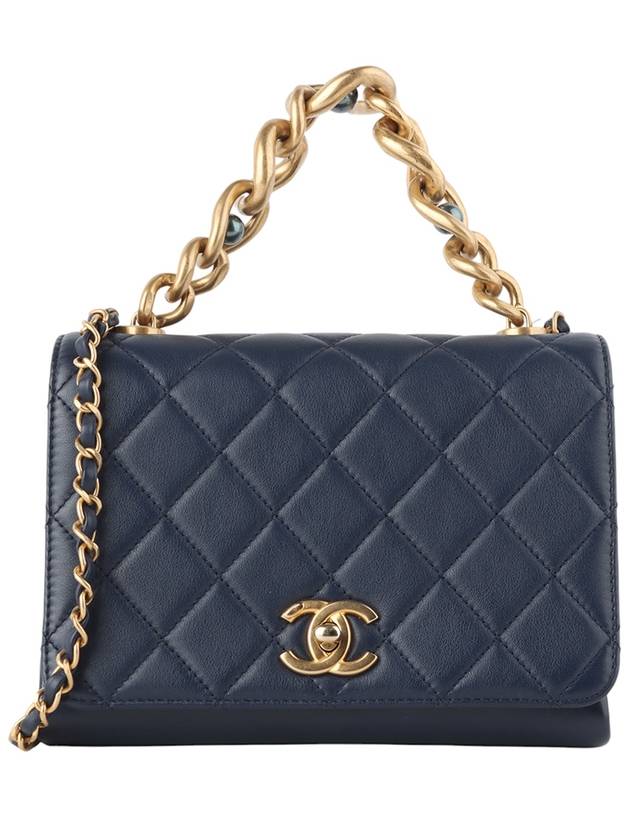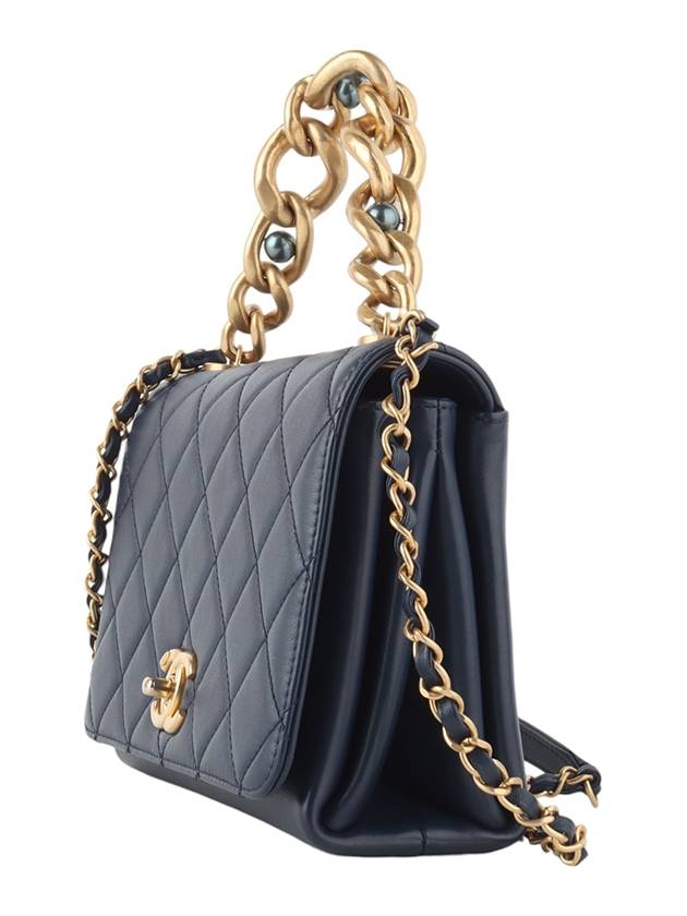 Product Name: AS2639 Triple Pearl Chain Turnlock Flap Shoulder Bag Department Store Invoice 33802
