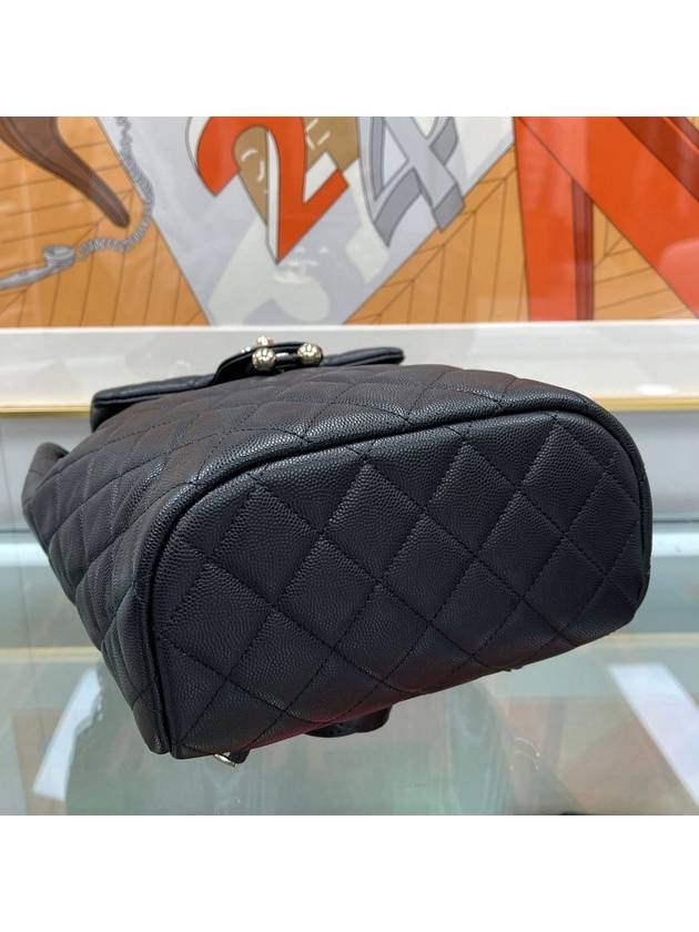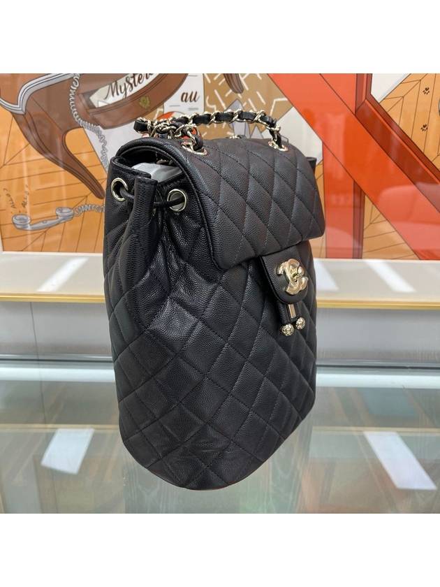 Product Name: Backpack Grained Shiny Calfskin Gold Metal Black