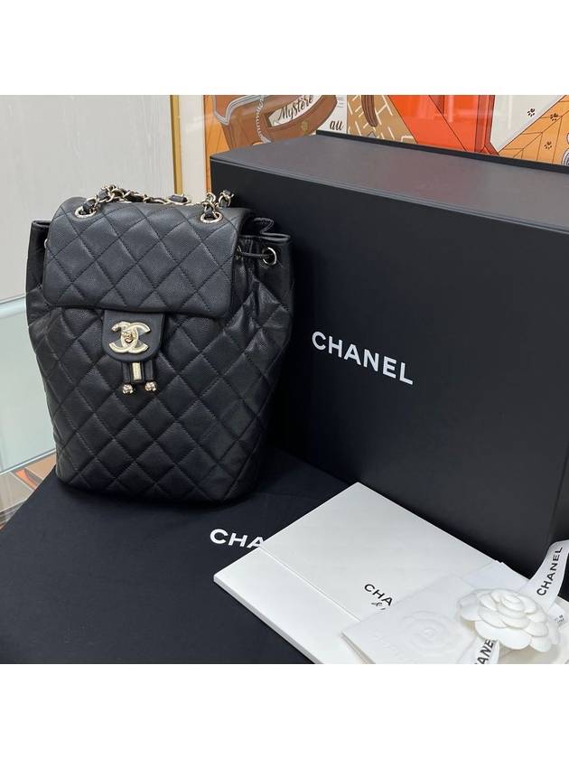 Backpack Grained Shiny Calfskin Gold Metal Black Chanel