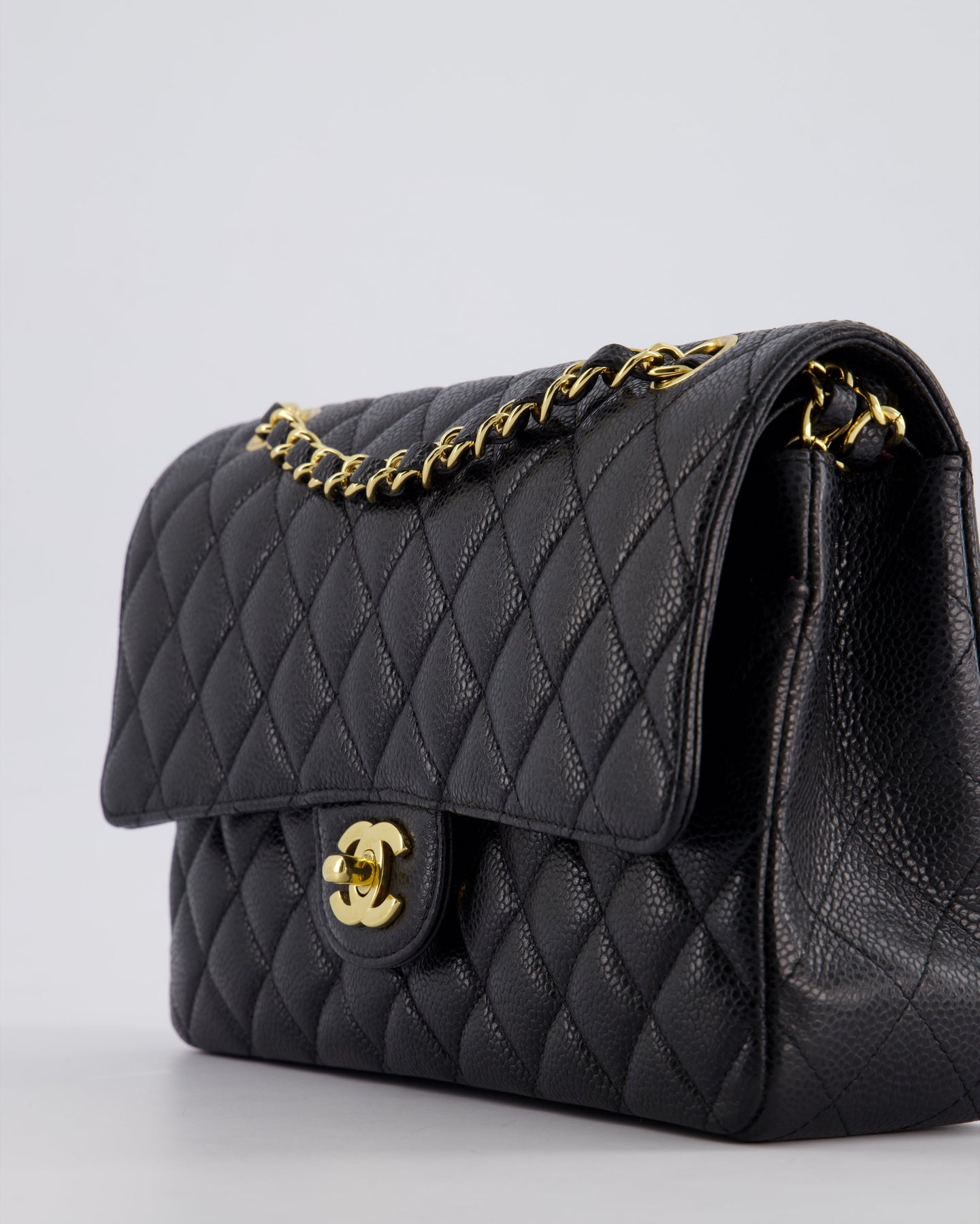 Chanel Black Medium Classic Double Flap Bag in Caviar Leather with Gold Hardware