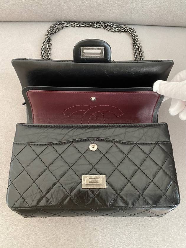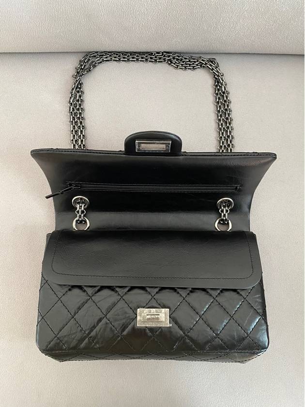 Product Name: 255 Chain Vintage Calfskin Ruthenium Medium Flap Shoulder Bag Black