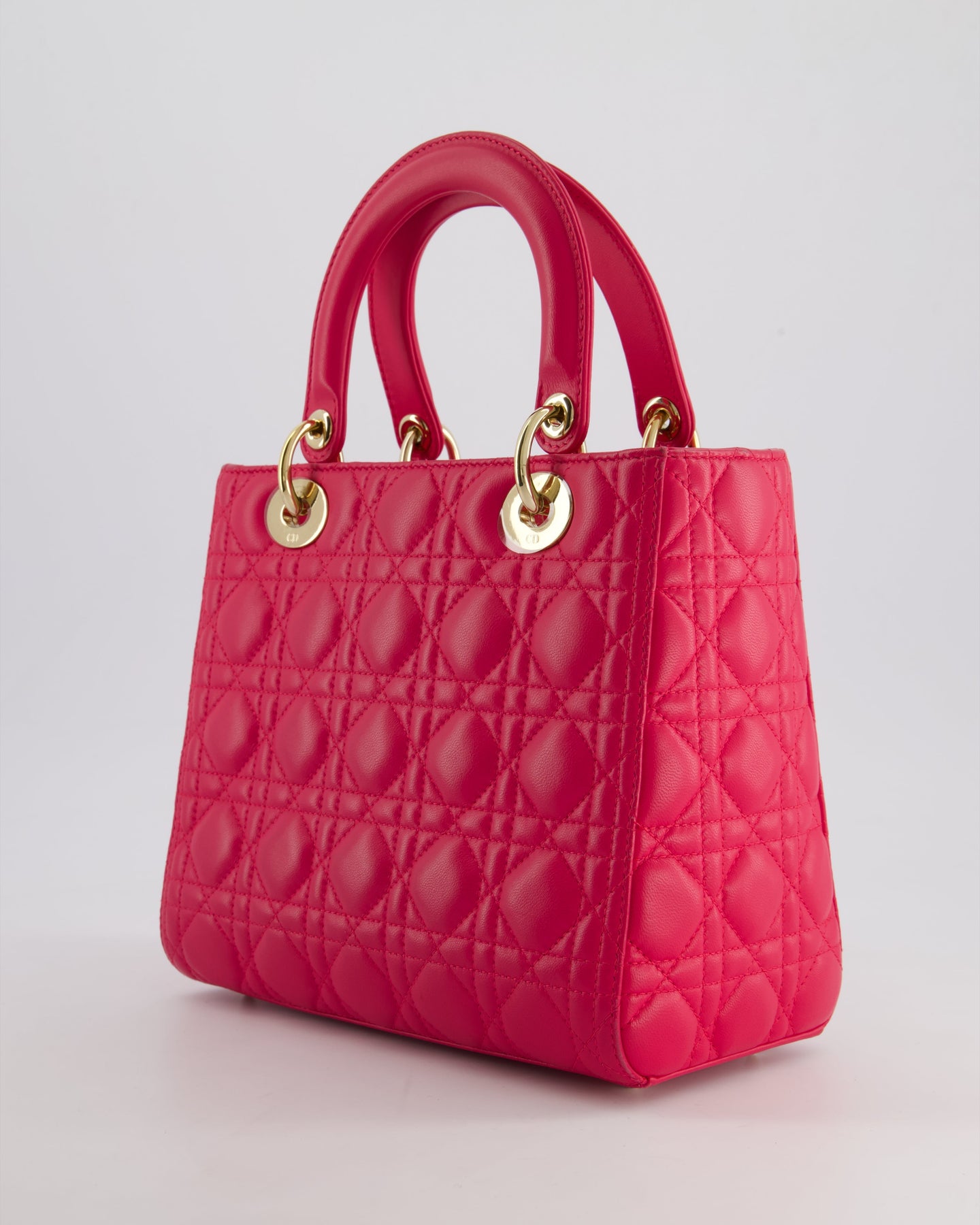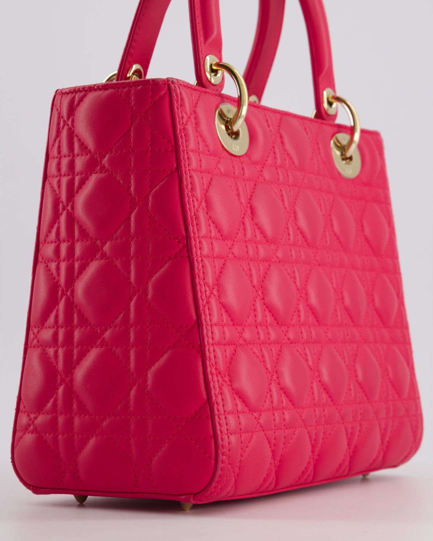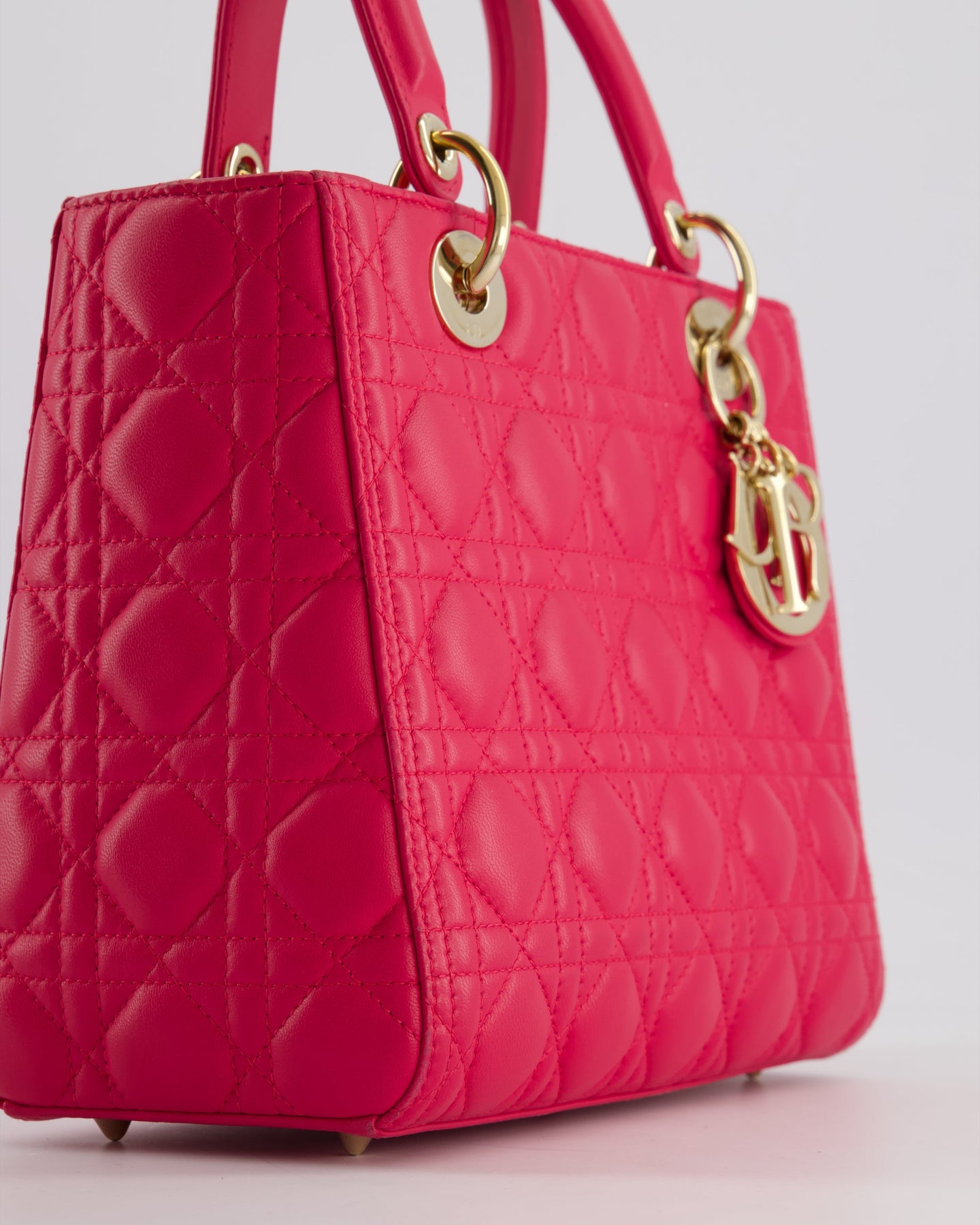 Christian Dior Hot Pink Lady Dior Bag in Cannage Lambskin with Silver Hardware RRP £5,300