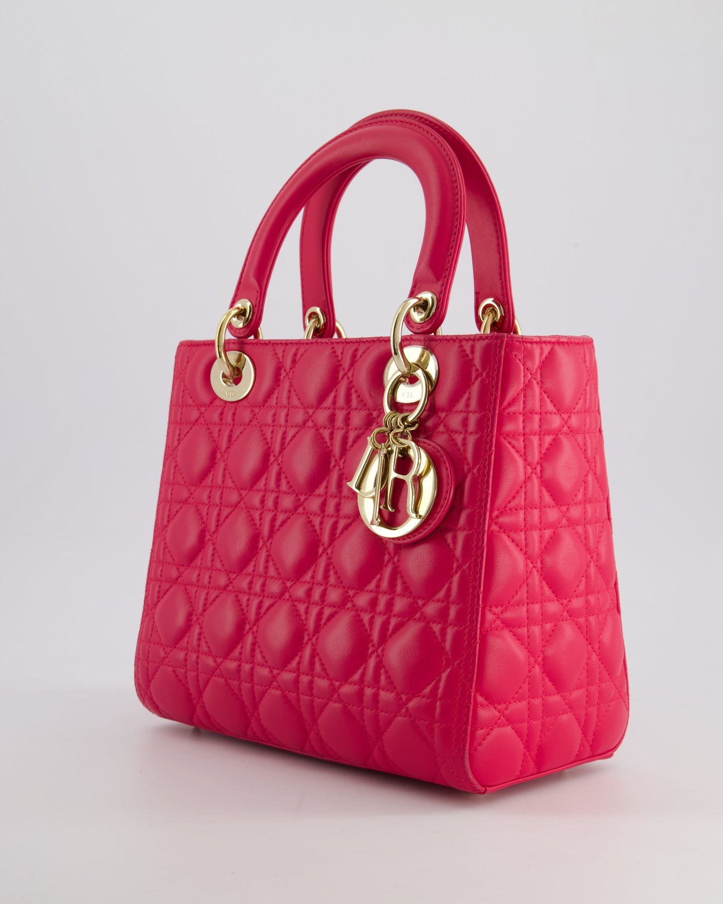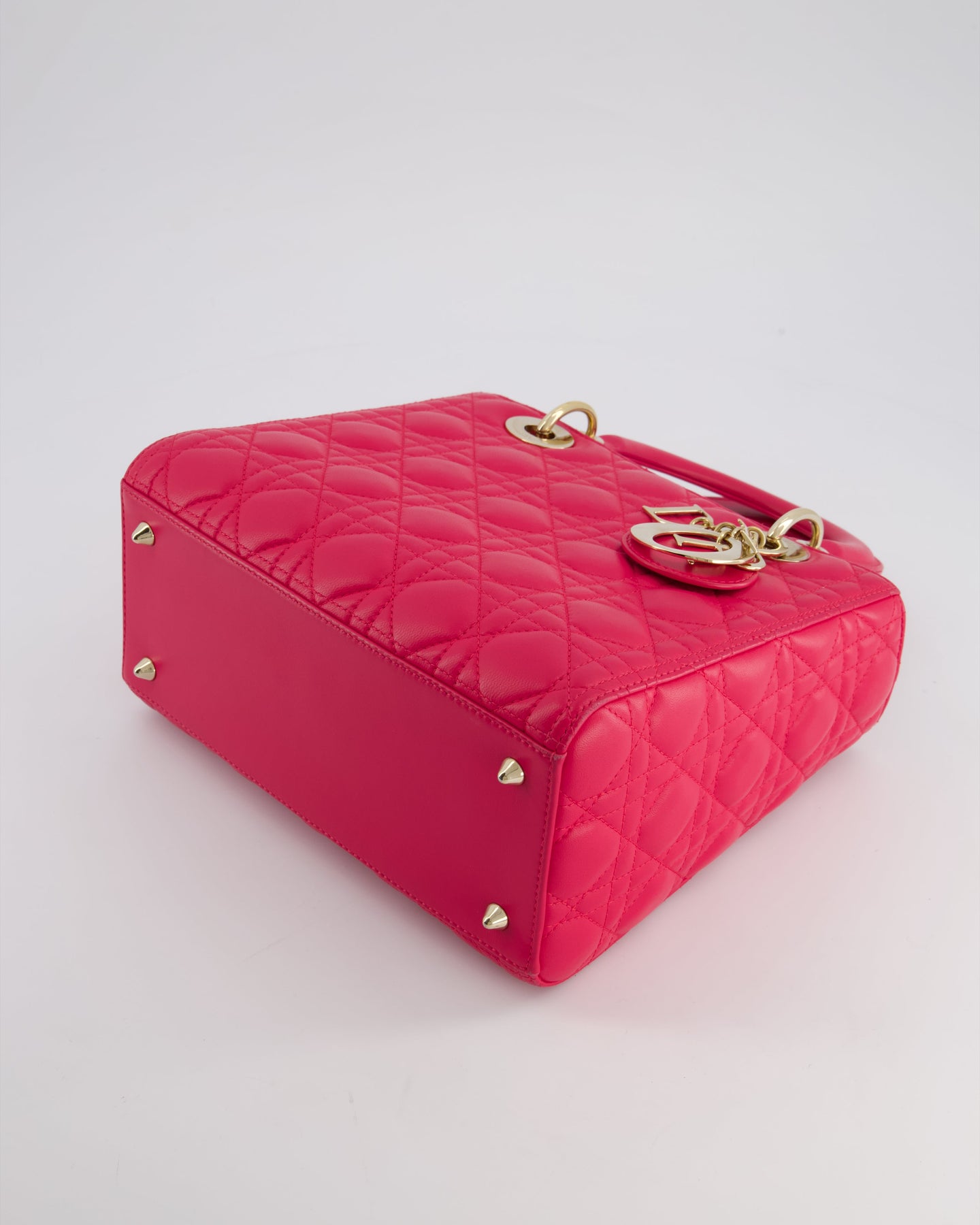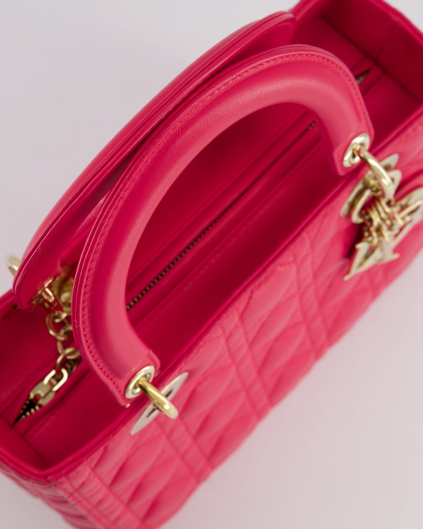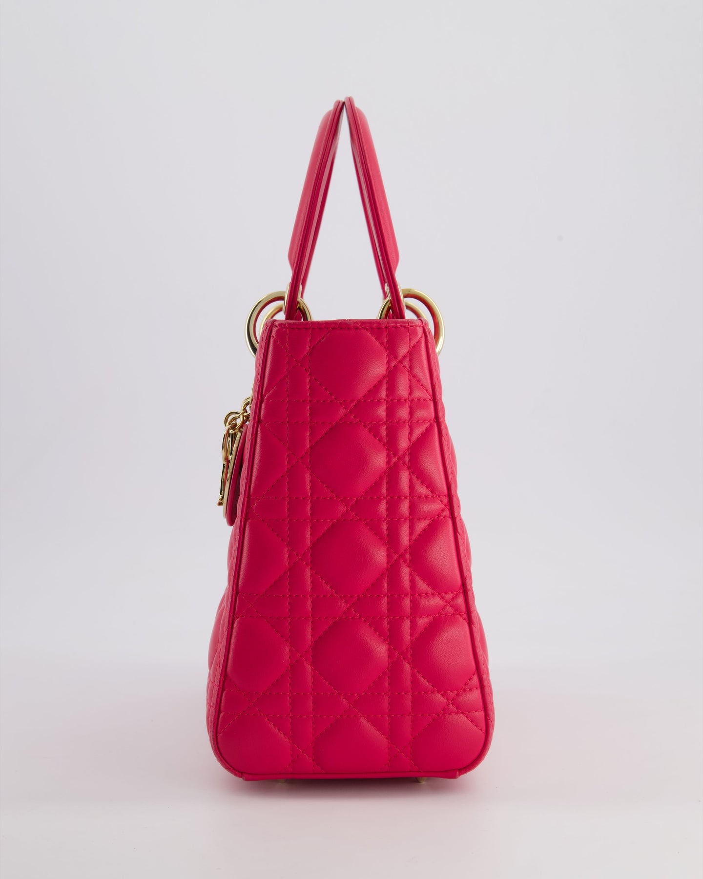 Christian Dior Hot Pink Lady Dior Bag in Cannage Lambskin with Silver Hardware RRP £5,300
