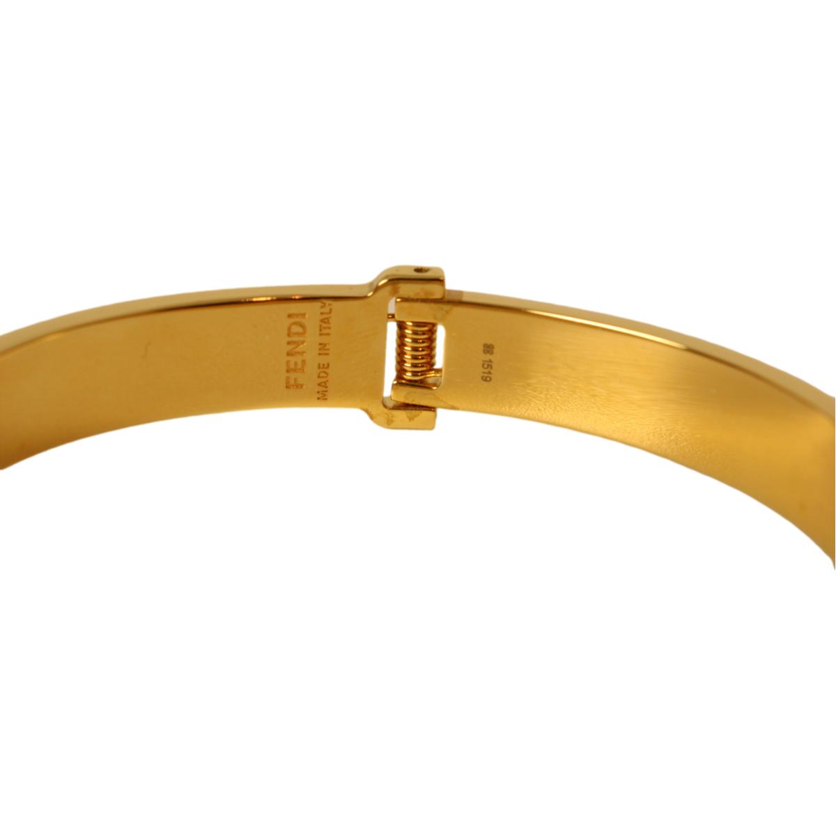 This cuff from Fendi is crafted from gold-finish metal with brown and black enamel details. The minimal design features the engraved F is Fendi logo. Elevate your look with this sophisticated piece from Fendi.