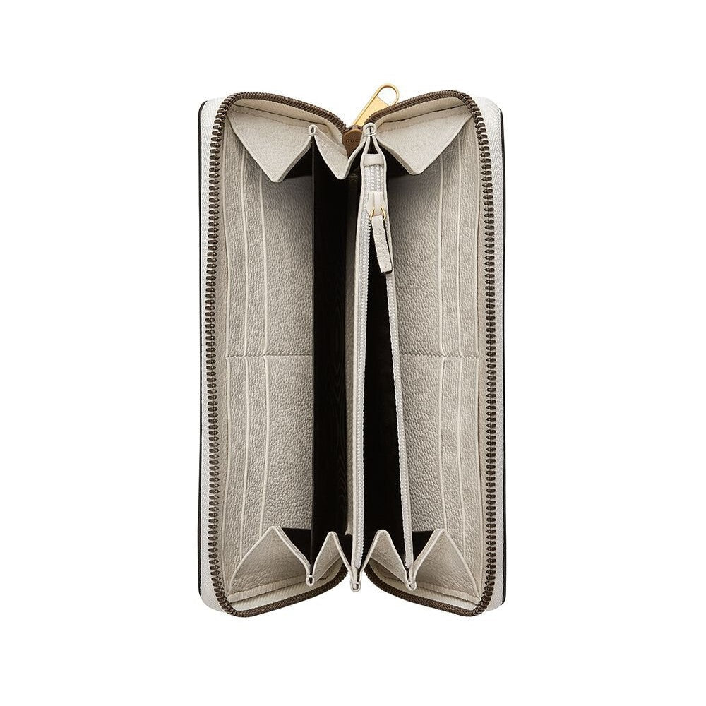 This unisex continental zip around is crafted with a pebbled white leather with the Cripto logo on the front face. The antique gold hardware zipper opens to a triple gusset interior lined with white leather. With 12 card slots, a zippered coin compartment, and 2 bill slots, this wallet will hold all of you essentials.