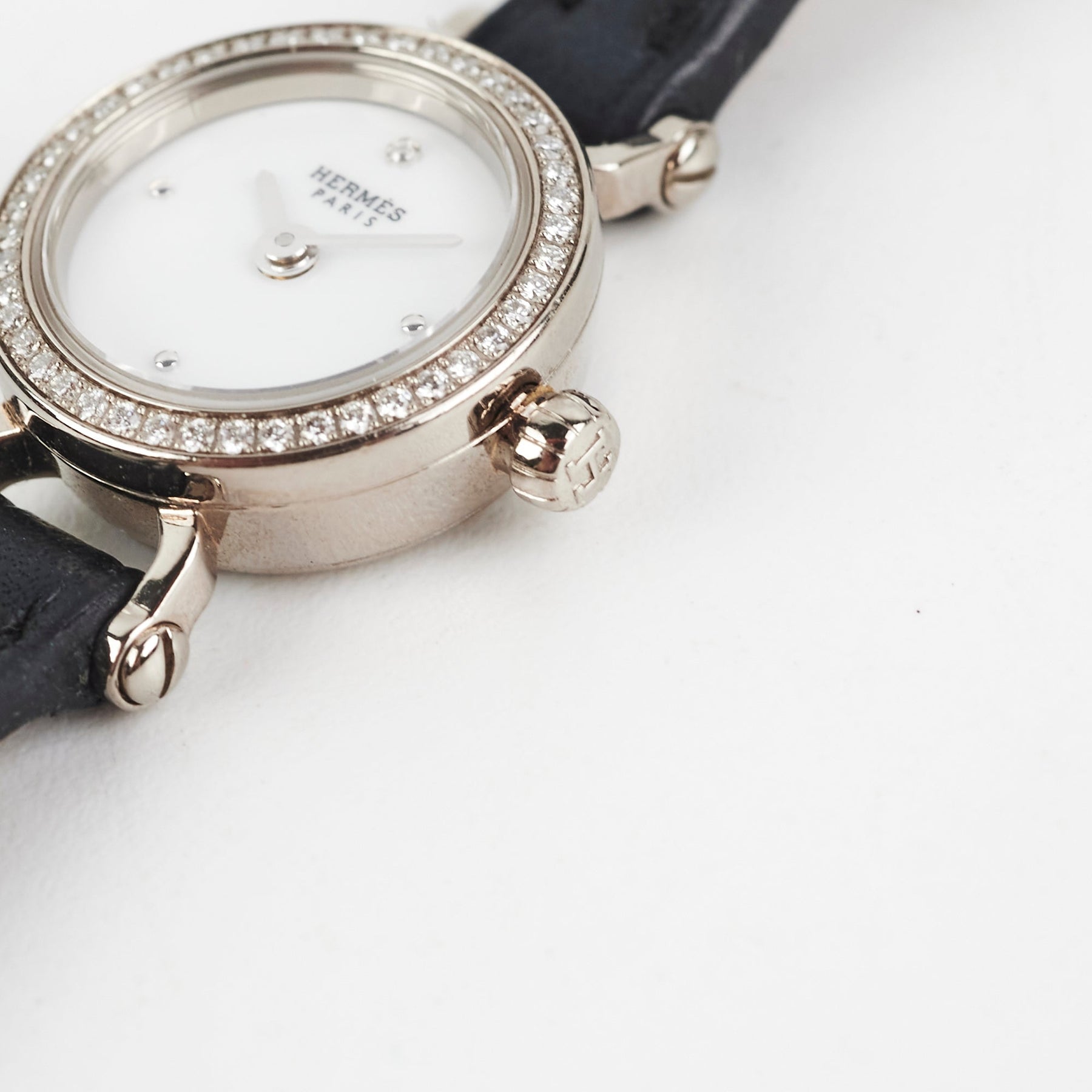 Hermes Faubourg Mini 15mm Watch Navy with 18k White Gold Diamonds
