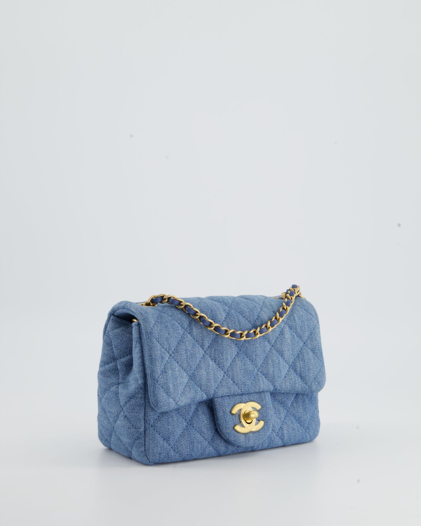 *HOT* Chanel Coco Crush Mini Square Flap Bag in Denim with Brushed Gold Hardware