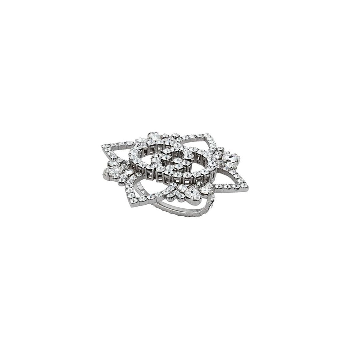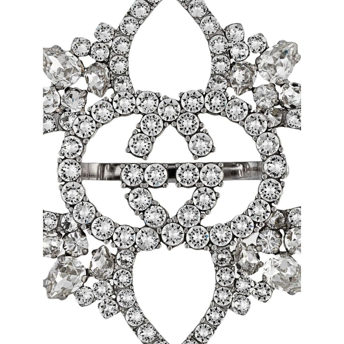 Interlocking G flower with sparkling white crystals with a vintage effect