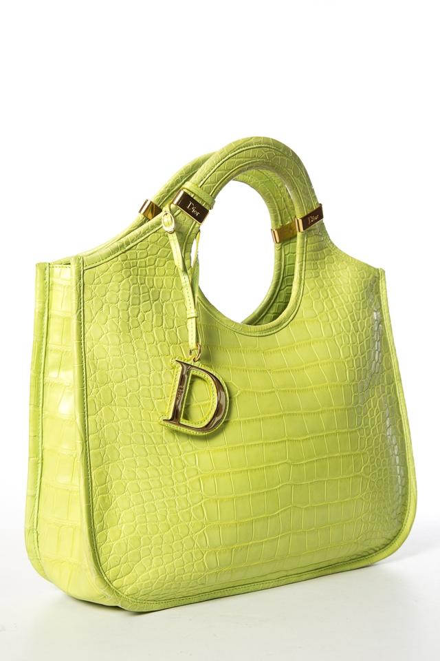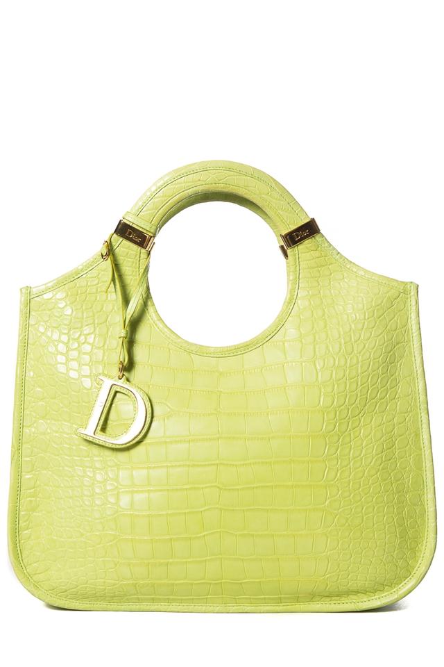 Di**r Christian Di**rita Handle Lime Green Crocodile Skin Leather Tote