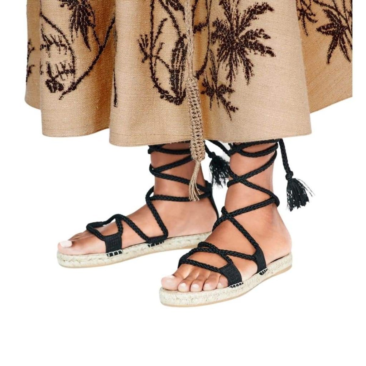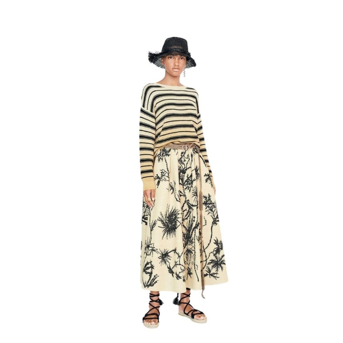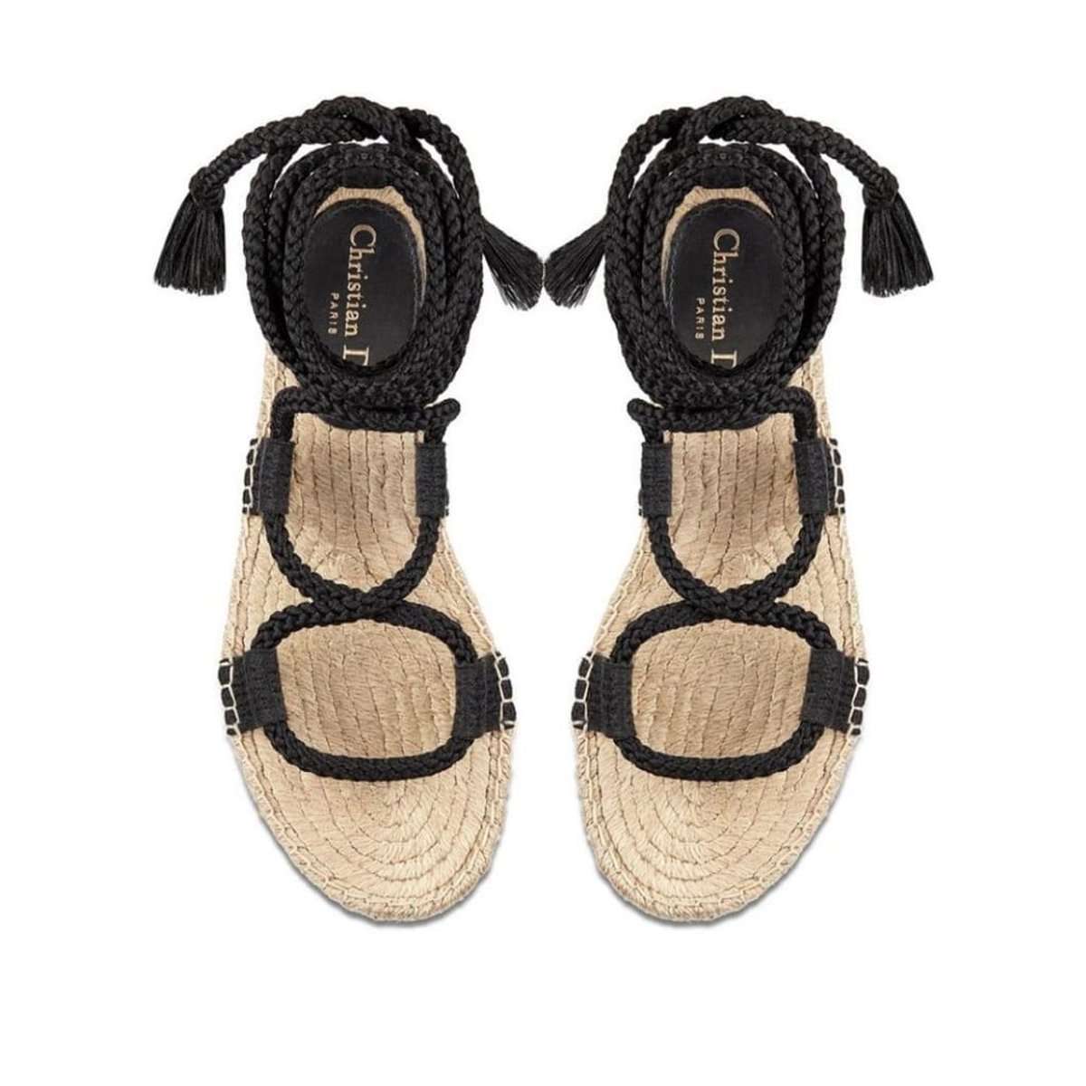 These sleek strappy sandals are mounted on a rope platform and a thin rubber sole with a star, CHRISTIAN DIOR's lucky symbol.