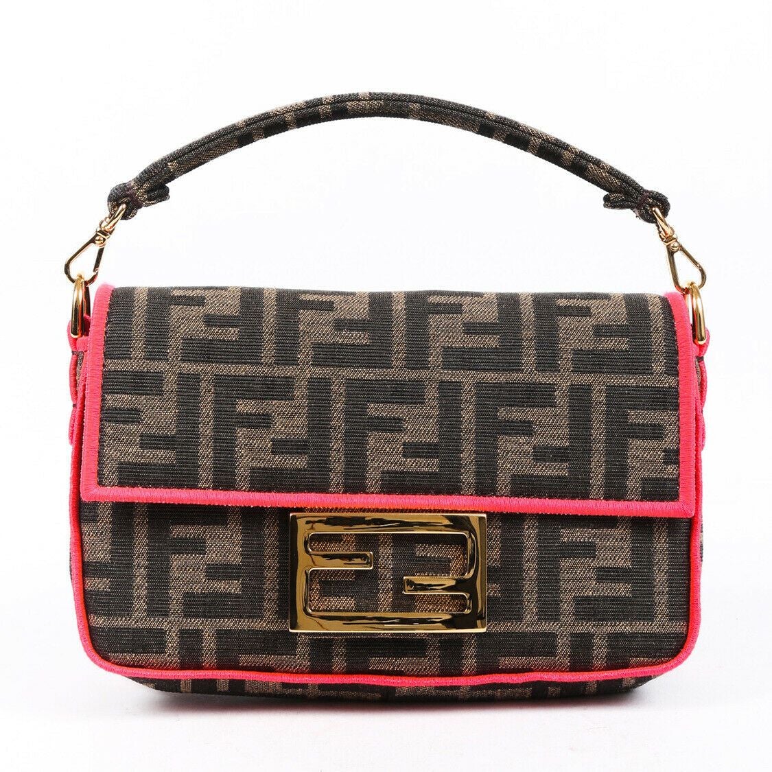 Fendi Bag Baguette Mini Zucca Brown Pink Crossbody