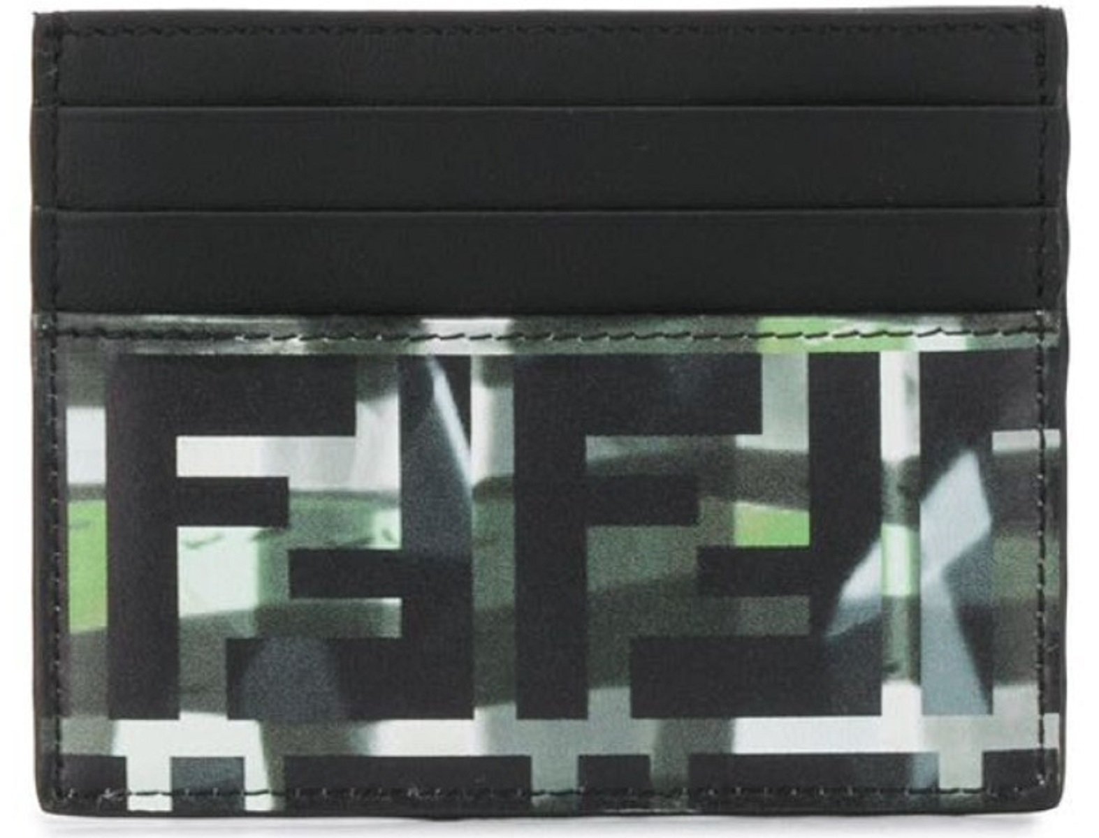 This Fendi card case is crafted using a black calfskin leather with a FF logo printed camouflage design. There are three card slots on each side of the card case separated by one bill slot in the center. This card case is so stylish and perfect for carrying your personal information and credit cards.